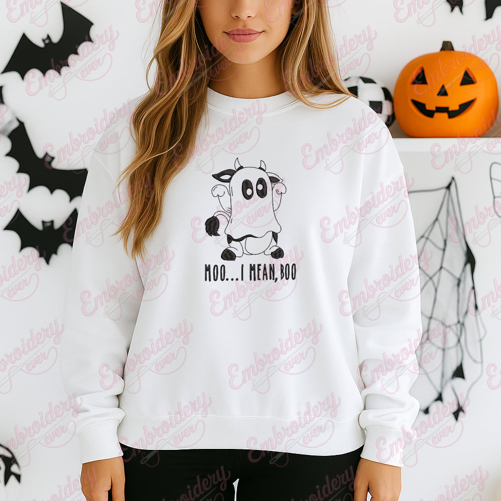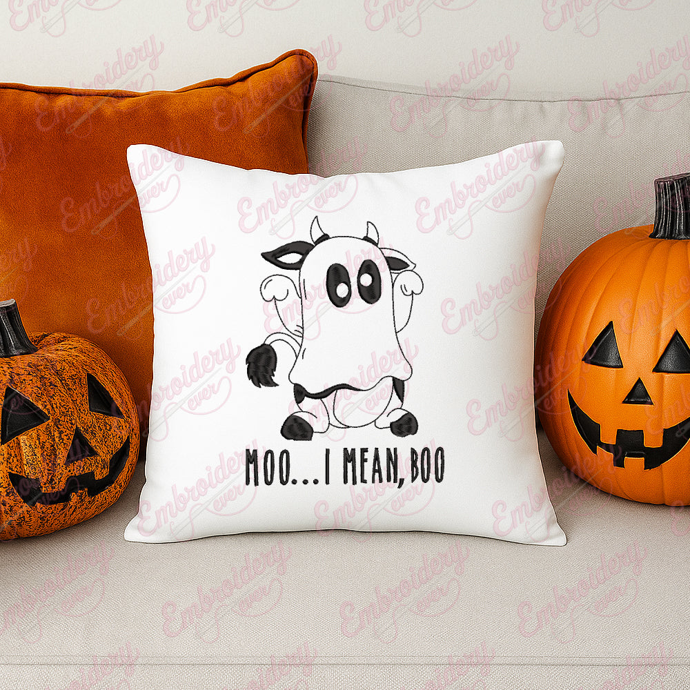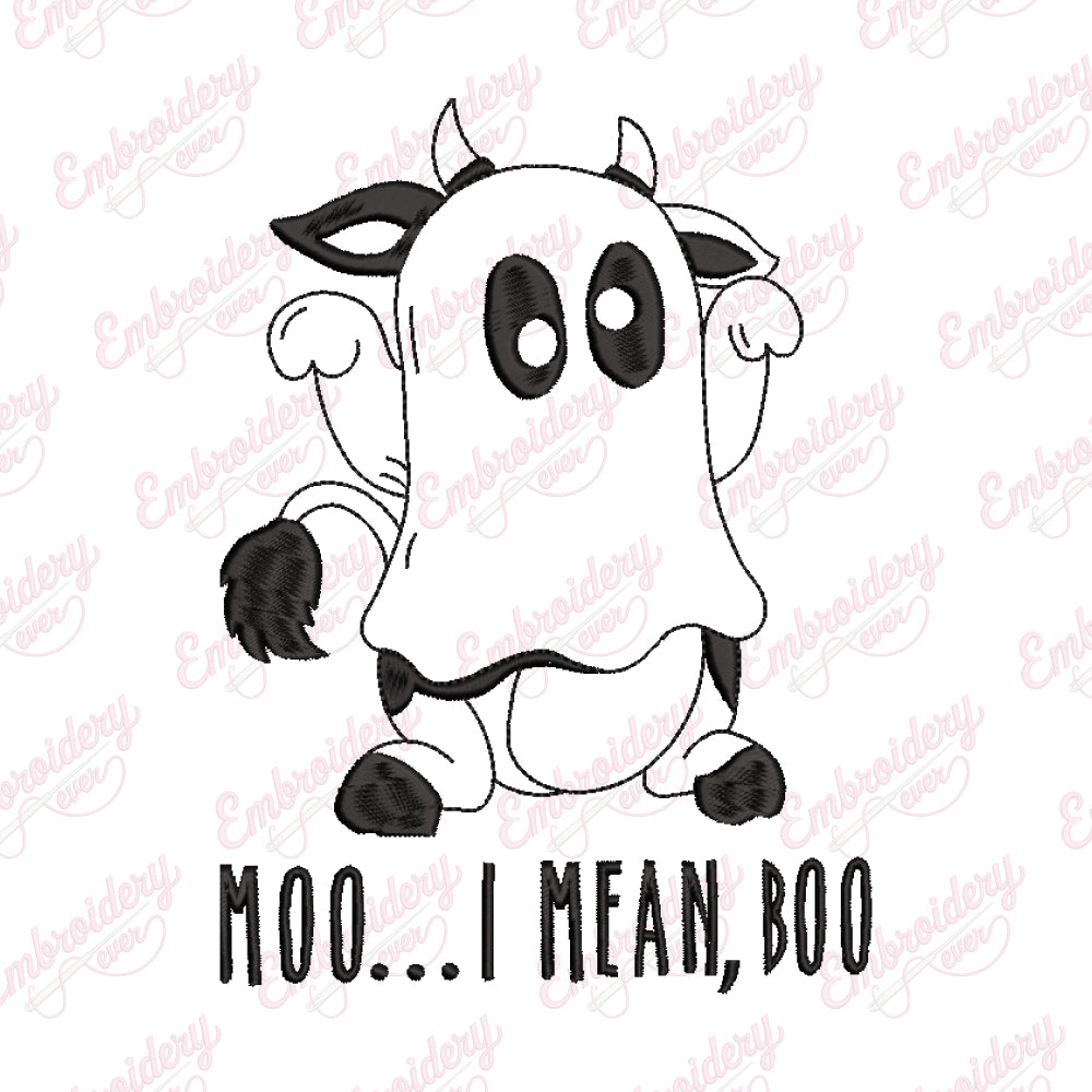 The "Moo I Mean Boo Halloween Ghost Cow Embroidery Design" combines festive charm with playful creativity, making it a perfect choice for Halloween-themed projects. This unique design features an adorable cow dressed as a ghost, cleverly blending farmyard whimsy with spooky motifs. Ideal for embroidering on apparel, accessories, or home décor items, it adds a distinctive touch to any Halloween collection. Crafted with precise stitch detailing, this design enhances your creations with clear, bold outlines and expressive character. Whether used for personal crafts or professional products, it offers versatility and appeal that stands out during the autumn season. Elevate your embroidery work with this imaginative, seasonal design.