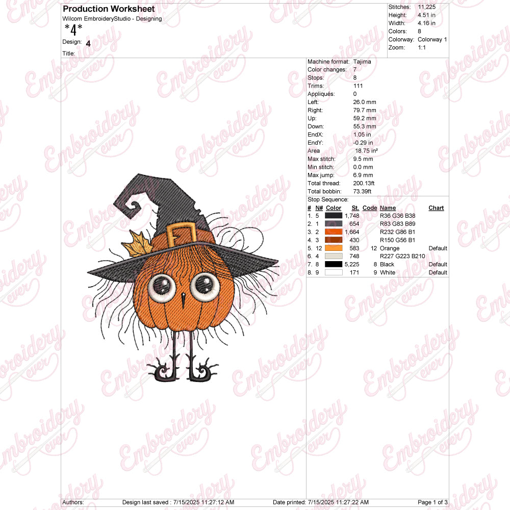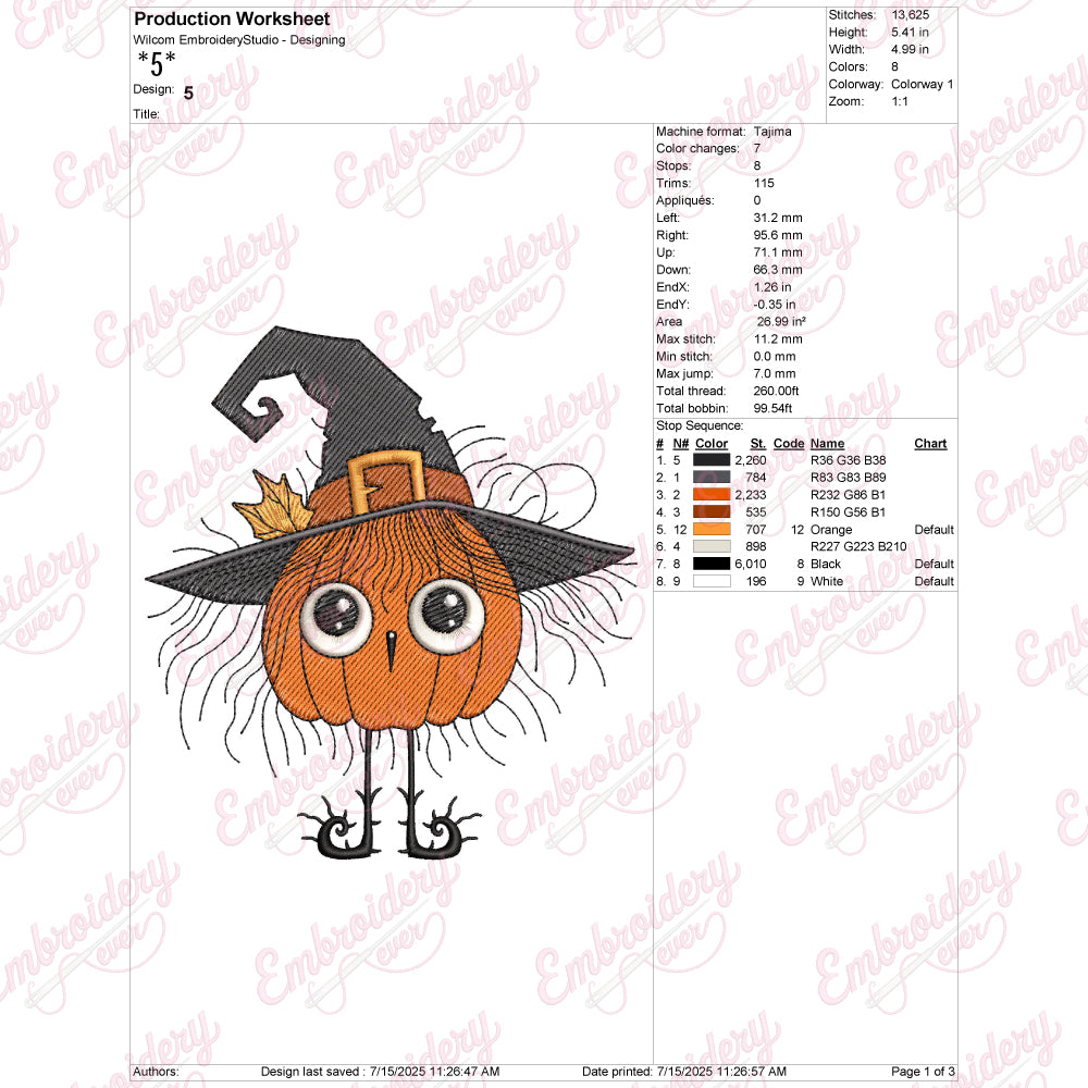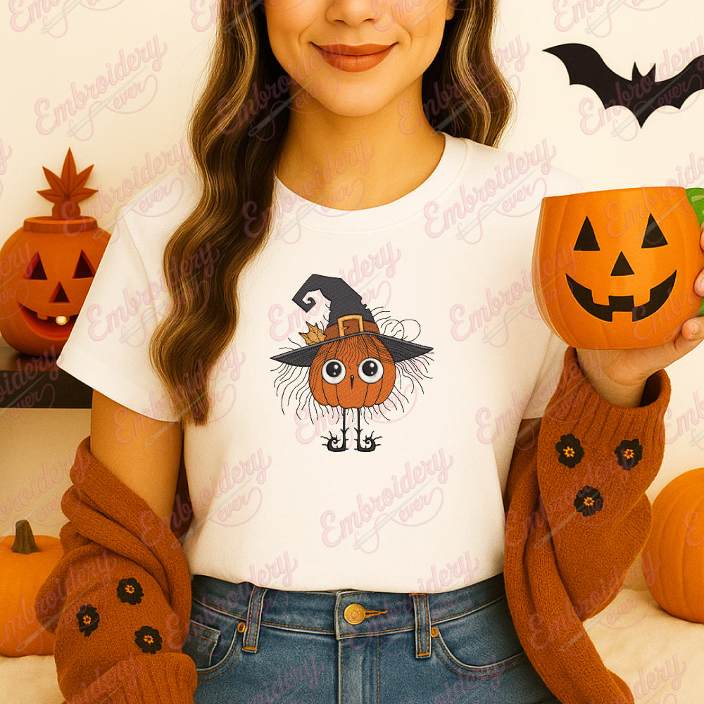 Let your creativity shine with this delightful Pumpkin Witch Hat embroidery design!