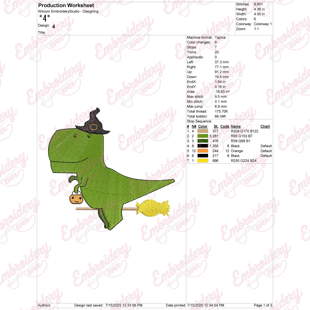 Let your creativity shine with this delightful T-Rex Witch embroidery design!