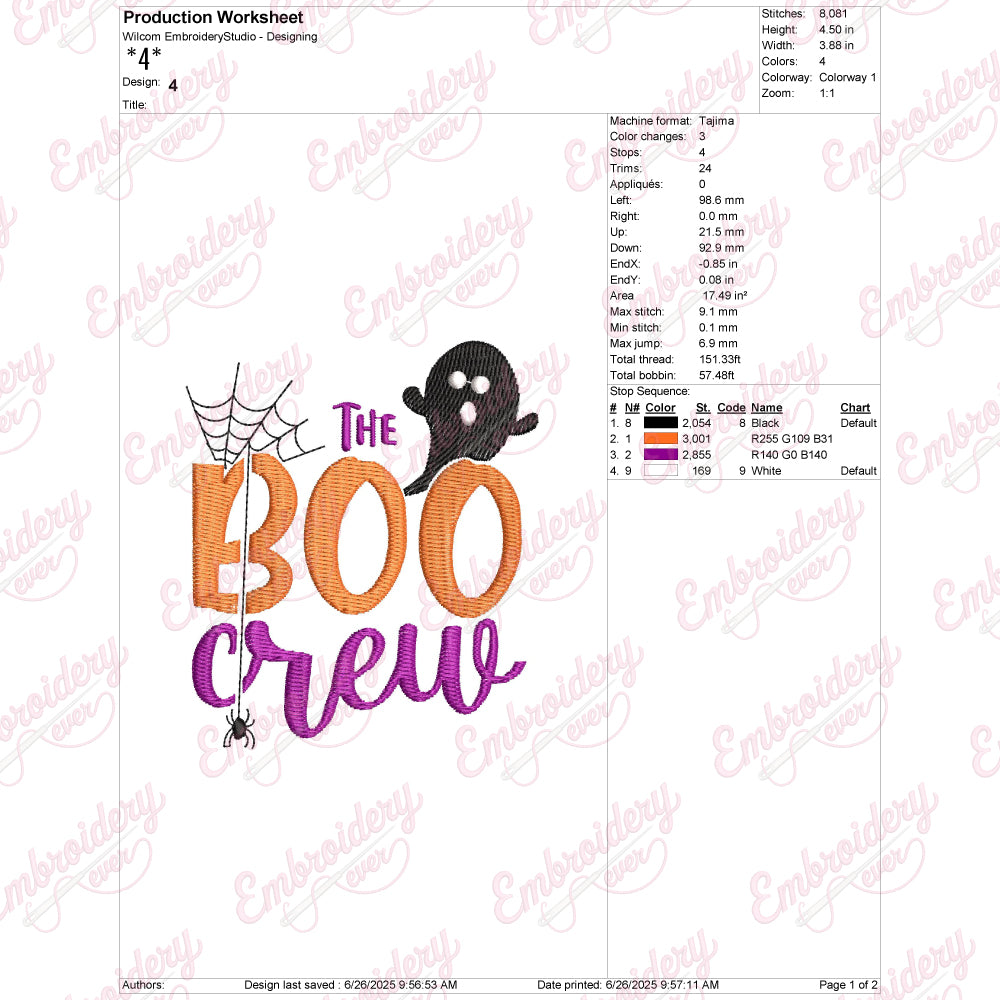 Let your creativity shine with this delightful The Boo Crew embroidery design!