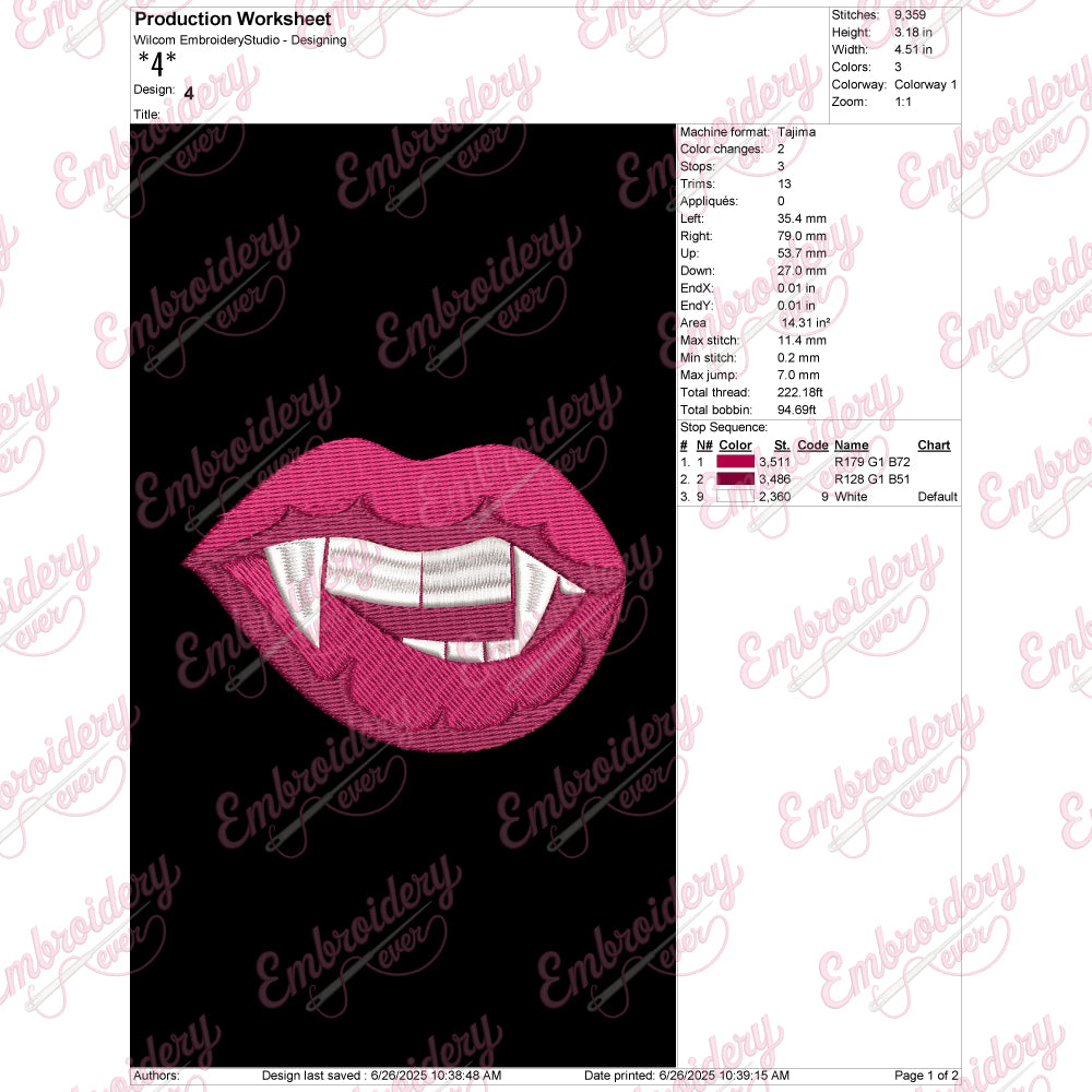 Let your creativity shine with this delightful Vampire Lips embroidery design!