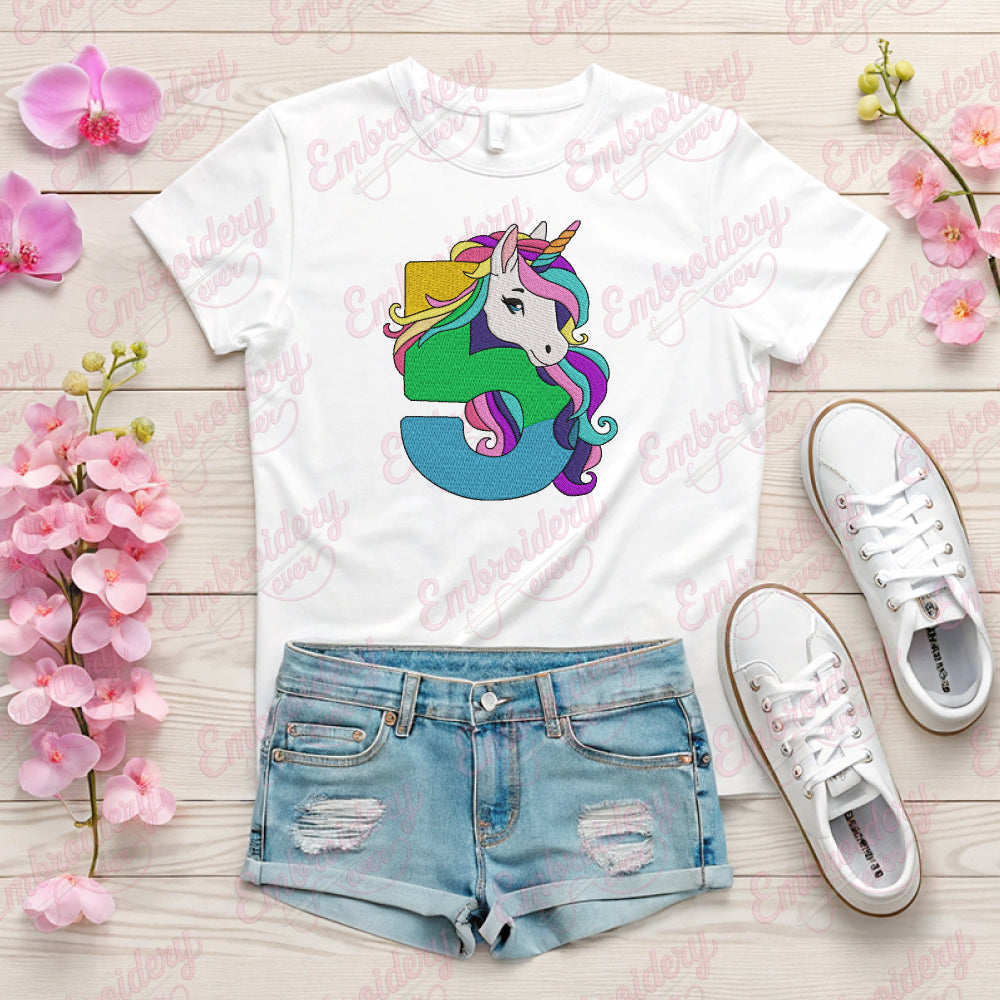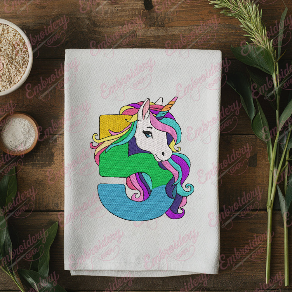 Celebrate a milestone birthday with the Unicorn Number 5th Birthday Embroidery Design, expertly crafted to add a magical touch to any project. This detailed embroidery pattern features a charming unicorn alongside the number five, combining whimsy and celebration in one elegant design. Ideal for personalizing birthday apparel, gifts, or decorations, it offers crisp stitching and vivid details that bring the scene to life. Perfect for experienced embroiderers looking to create standout birthday keepsakes, this design balances complexity with ease of use, ensuring clean results on various fabric types. Elevate your birthday crafts with this enchanting and memorable embroidery motif.