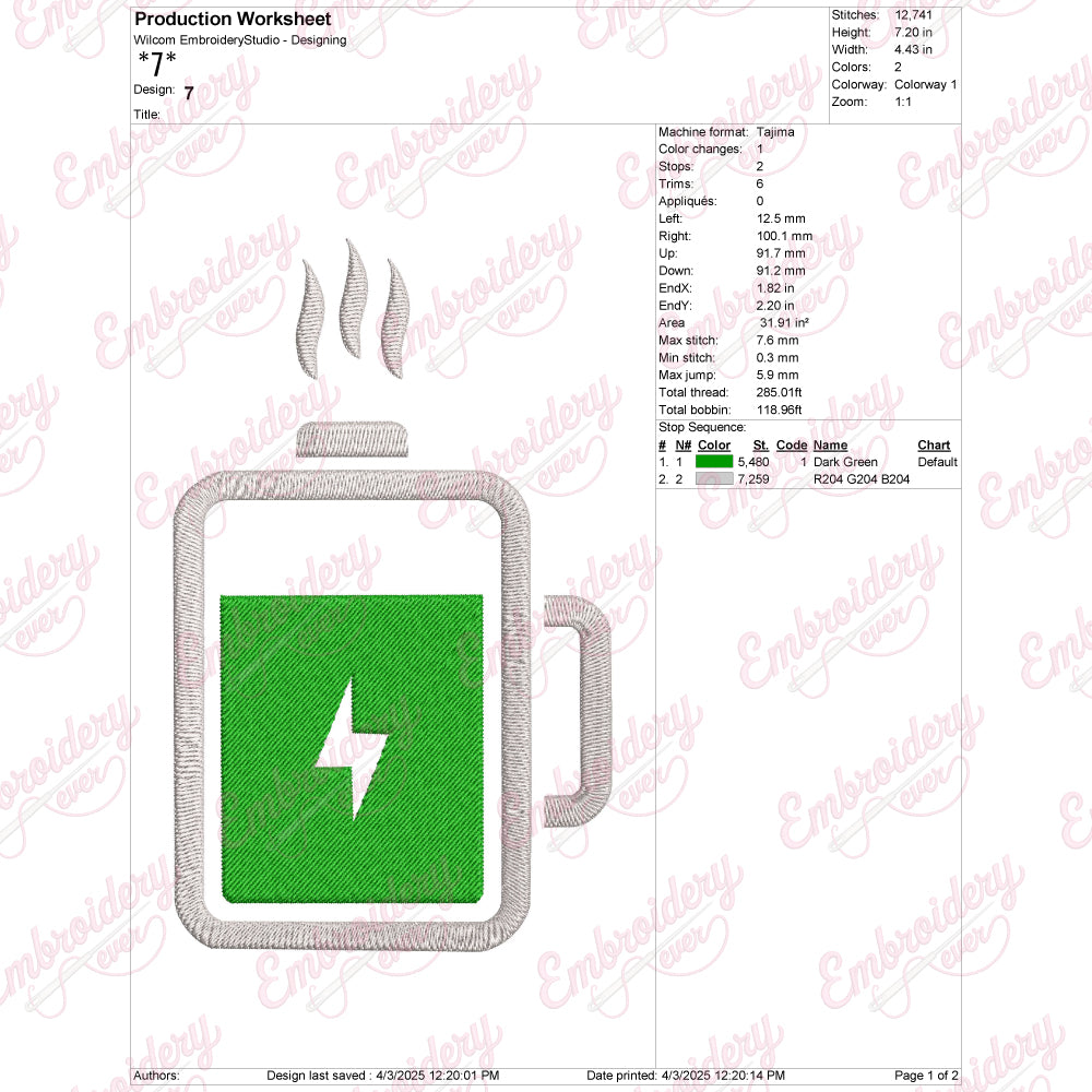 The Battery Charging Embroidery Design is a meticulously crafted pattern that captures the dynamic essence of modern energy technology. Ideal for tech enthusiasts and contemporary fashion, this design features a detailed depiction of a battery icon in the process of charging, symbolizing power and renewal. Created with precision, it offers clean lines and balanced proportions that ensure clarity and visual impact on various fabric types. Perfect for embellishing apparel, accessories, or home textiles, this embroidery design adds a sophisticated, tech-inspired touch. Its versatile style makes it suitable for both casual and professional settings, enhancing any item with a subtle yet meaningful statement about energy and progress.