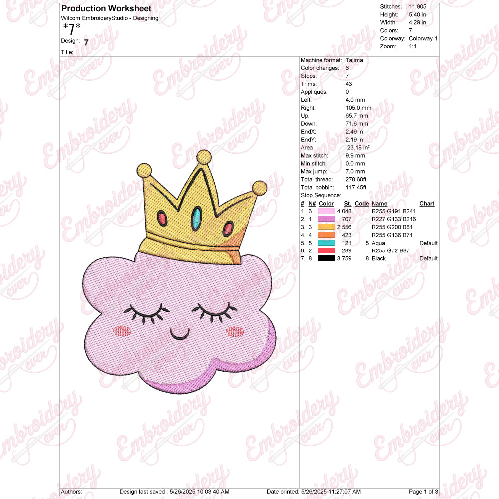 Let your creativity shine with this delightful Cloud With Crown embroidery design!