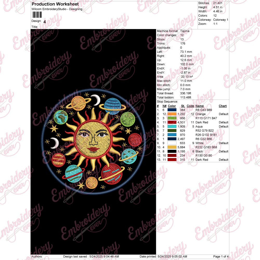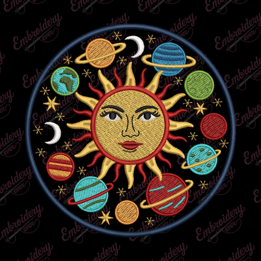 The Solar System Embroidery Design presents a detailed and intricate representation of our planetary system, crafted to elevate any textile project. This design meticulously showcases the sun and the eight major planets with precise positioning and scale, making it an educational and visually striking addition. Perfect for enthusiasts and professionals alike, it offers exceptional stitch clarity and color contrast, ensuring each celestial body stands out. Ideal for decorating apparel, accessories, or home décor, this embroidery design combines scientific accuracy with artistic finesse, allowing creators to express their fascination with space in a refined, lasting textile artwork.