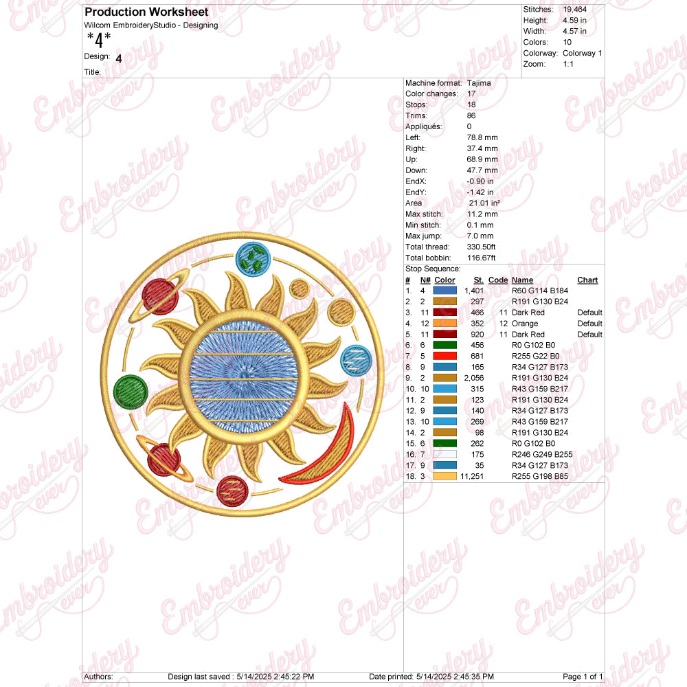 Sun and Planets Digital Download Machine Embroidery Design