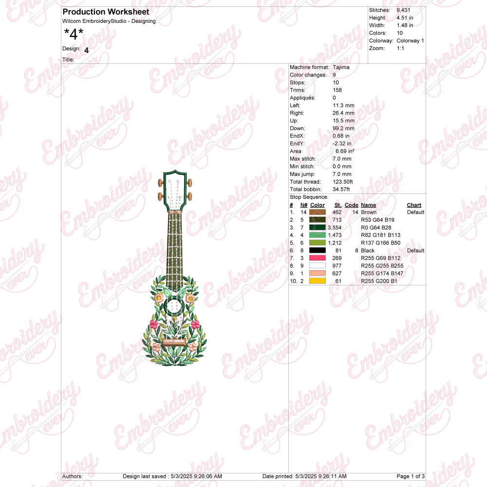 Let your creativity shine with this delightful Floral Ukulele embroidery design!