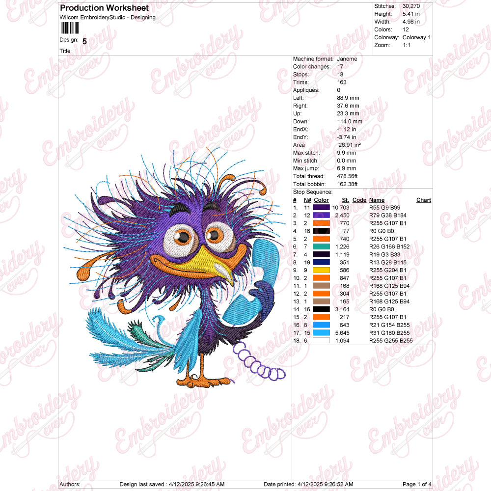 Let your creativity shine with this delightful Crazy Bird Holding a Telephone embroidery design!