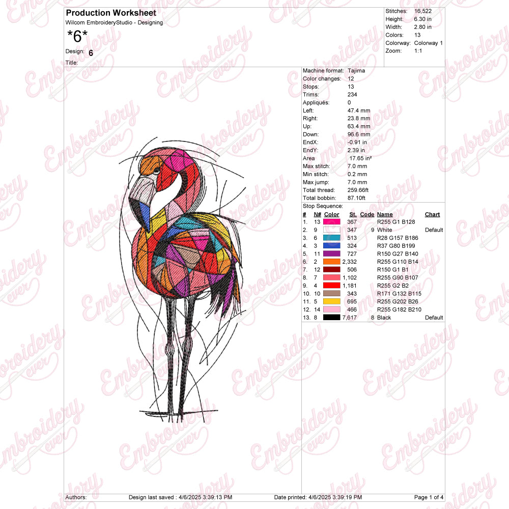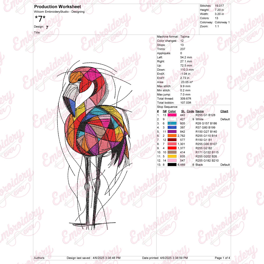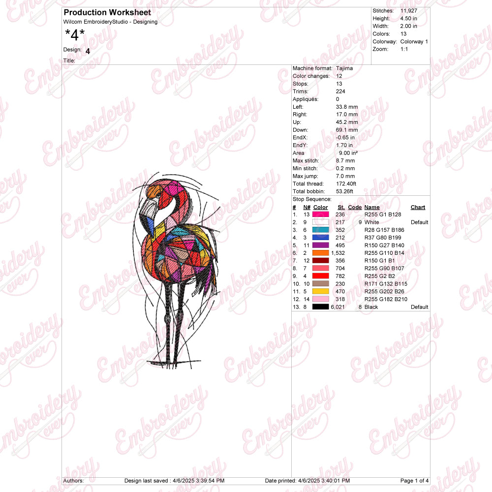 The Colorful Flamingo Bird Machine Embroidery Design offers a vibrant and detailed pattern perfect for enhancing textiles with a tropical flair. Expertly crafted, this design captures the flamingo’s graceful posture and vivid plumage through a rich palette of colors, ensuring each stitch brings the bird to life. Ideal for use on garments, home décor, or accessories, it adds a unique, eye-catching element that stands out. Compatible with most embroidery machines, this design balances intricate detail with ease of stitching, making it suitable for both advanced and intermediate users seeking to elevate their projects with professional-quality embroidery.