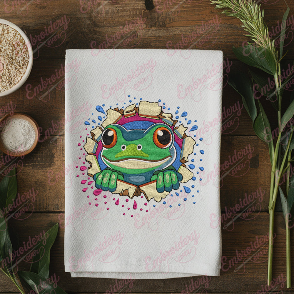 The Frog Hole In A Wall Embroidery Design captures a charming and whimsical scene perfect for adding character to any fabric project. This intricate design features a detailed frog peeking through a textured wall hole, showcasing expert craftsmanship in stitch placement and shading. Ideal for embellishing garments, home décor, or accessories, it brings a playful yet sophisticated touch to your embroidery collection. The design’s balanced composition and fine details ensure it stands out clearly on various fabric types, making it a versatile choice for both beginners and experienced embroiderers seeking to enhance their creative projects with a unique, nature-inspired motif.