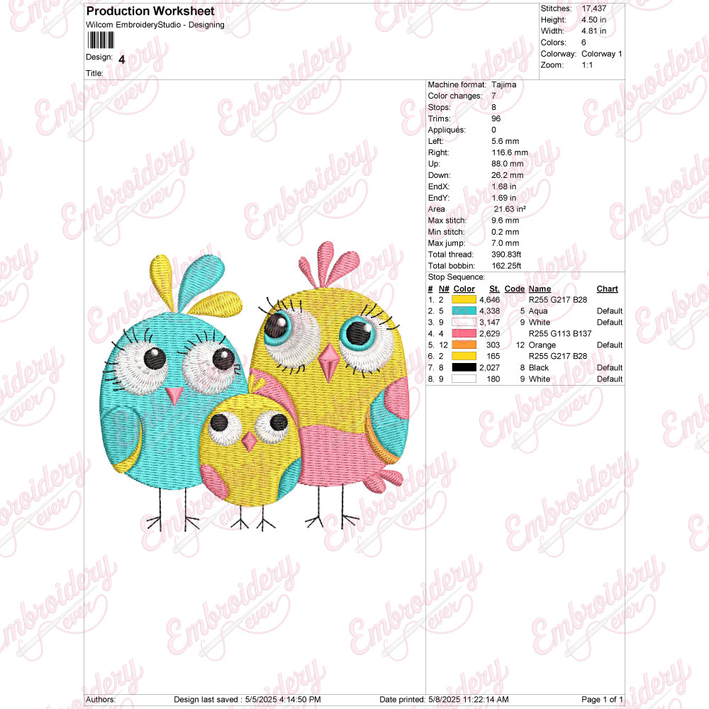Funny Birds Digital Download Machine Embroidery Design