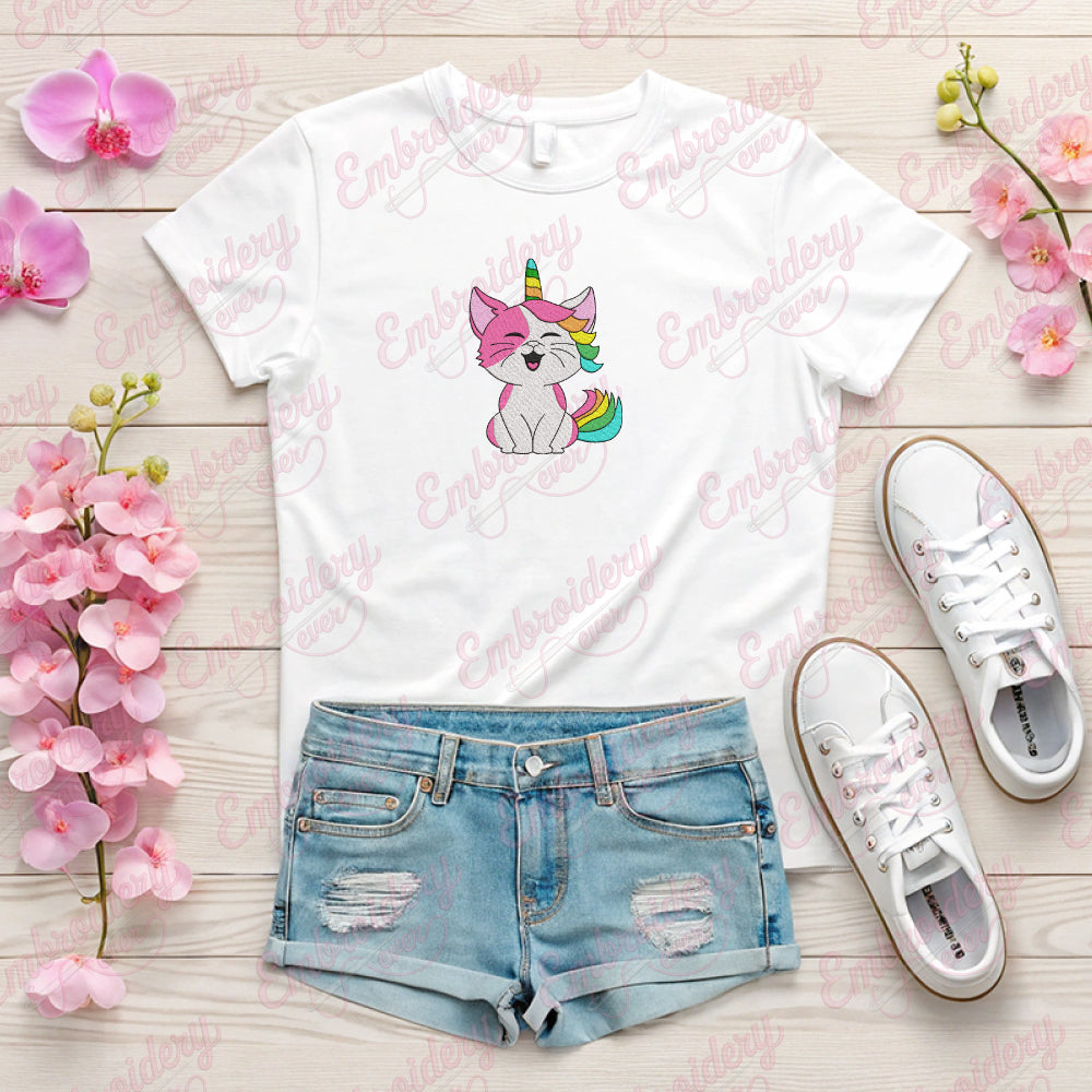 Celebrate whimsy and charm with the Funny Caticorn Cat Unicorn Embroidery Design, a delightful fusion of feline grace and mythical magic. This expertly crafted embroidery pattern features a playful cat adorned with a unicorn horn, blending fantasy and humor in a unique way. Ideal for adding a touch of enchantment to clothing, accessories, or home textiles, this design brings a lighthearted spirit to any project. Its intricate details ensure a vibrant and eye-catching finish, making it perfect for crafters seeking to showcase creativity with a professional touch. Elevate your embroidery collection with this imaginative and fun design that appeals to cat lovers and unicorn enthusiasts alike.