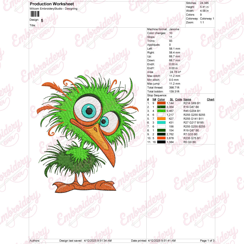 Funny Crazy Bird Digital Download Machine Embroidery Design
