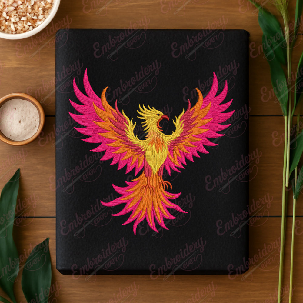 The Phoenix Bird Embroidery Design captures the legendary essence of the mythical phoenix, symbolizing rebirth and renewal. This intricate design features detailed feather patterns and dynamic flames, showcasing expert craftsmanship ideal for elevating textiles with a touch of timeless elegance. Perfect for embellishing garments, accessories, or home décor, the design offers versatility while maintaining a sophisticated aesthetic. Its precise stitching ensures durability and a refined finish, making it suitable for both personal projects and professional embroidery work. Embrace the power and beauty of the phoenix to create standout pieces that convey strength and transformation.
