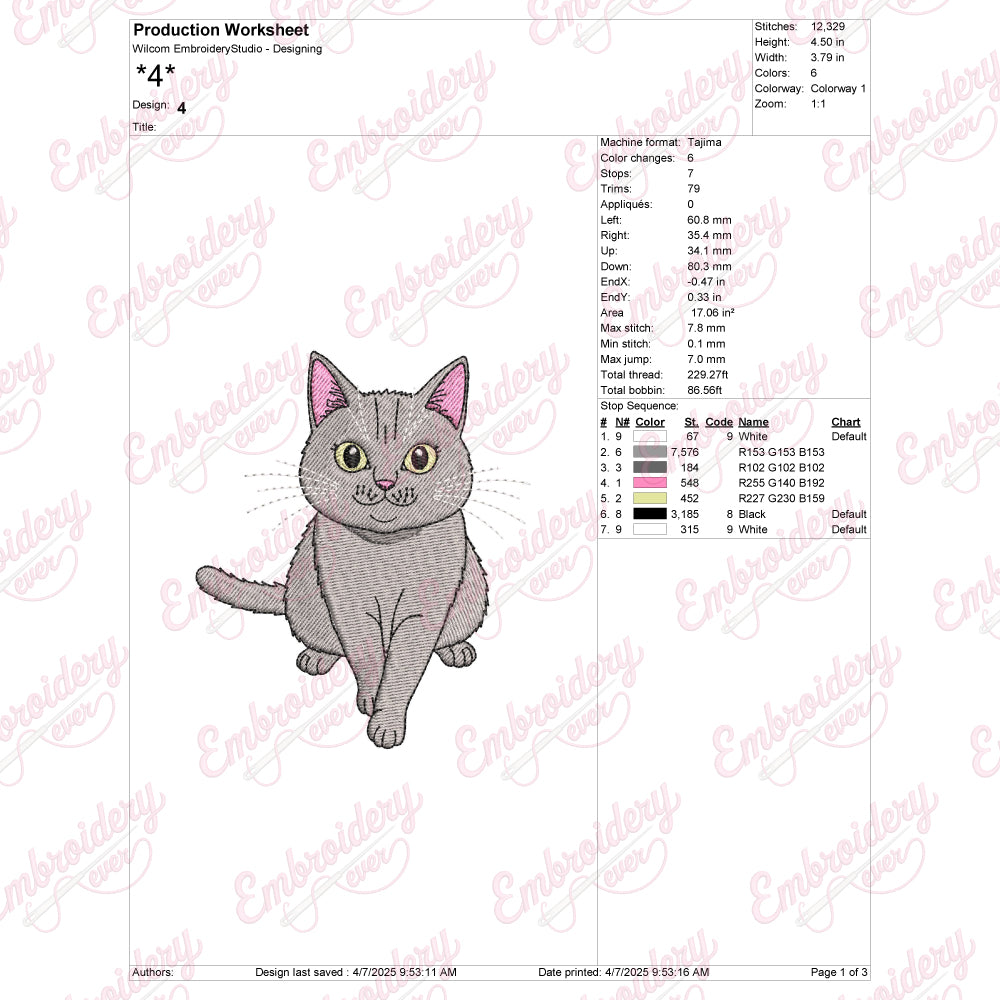 The Russian Blue Cat Embroidery Design measures 4.50 inches by 3.79 inches (approximately 114 mm by 96 mm), offering a detailed and precise representation of this elegant feline. Crafted with expert attention to detail, this design captures the distinctive features of the Russian Blue breed, including its sleek coat and expressive eyes. Ideal for adding a sophisticated touch to garments, accessories, or home textiles, the size is versatile enough to fit on shirts, bags, or pillow covers without overwhelming the fabric. This embroidery design balances intricate artistry with practical dimensions, making it a refined choice for enthusiasts seeking quality and style in their projects.