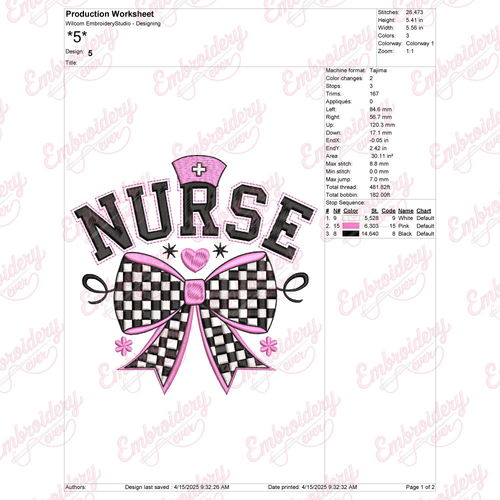 The Nurse With Bow Embroidery Design captures a charming and professional aesthetic, perfect for healthcare-themed projects. This detailed embroidery pattern features a nurse figure adorned with a distinctive bow, symbolizing care and dedication. Ideal for embellishing uniforms, tote bags, or gifts, it adds a personalized touch that honors the nursing profession. Crafted with precision, the design ensures clear stitching and vibrant detail, enhancing any fabric it adorns. Suitable for both experienced embroiderers and enthusiasts, this design offers versatility and a meaningful way to celebrate healthcare heroes through creative expression.