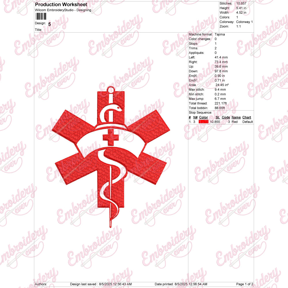 The Star of Life Nursing Embroidery Design is a precise and meaningful emblem tailored for healthcare professionals. Featuring the iconic six-pointed star with the Rod of Asclepius at its center, this design symbolizes emergency medical services and nursing excellence. Crafted with attention to detail, it highlights the dedication and expertise of nurses in critical care. Ideal for uniforms, scrubs, or accessories, this embroidery design enhances professional attire with a symbol recognized worldwide for medical aid and life-saving skills. Its clean lines and balanced composition ensure a polished, professional look that honors the vital role of nursing staff.