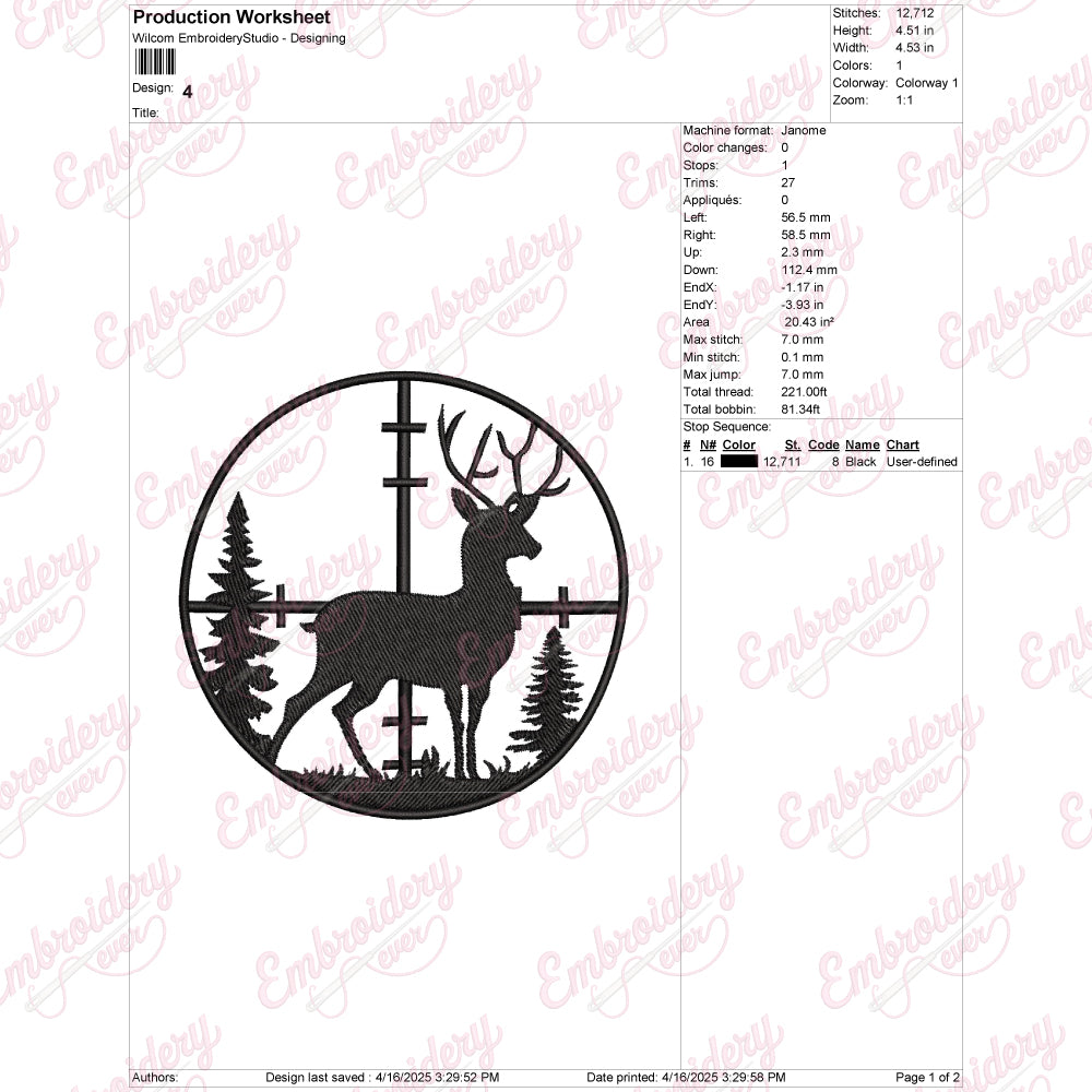 The Deer Hunting Embroidery Design captures the essence of the outdoor hunting experience with intricate detail and expert craftsmanship. This design features a majestic deer, rendered with precise stitching that highlights its natural form and antlers, making it ideal for embellishing hunting gear, jackets, hats, or accessories. Crafted to withstand regular wear, the embroidery adds a rugged yet refined touch to any fabric. Perfect for hunting enthusiasts or those who appreciate wildlife art, this design brings a sense of adventure and respect for nature to your apparel. Its detailed pattern ensures a professional finish that stands out in both casual and outdoor settings.
