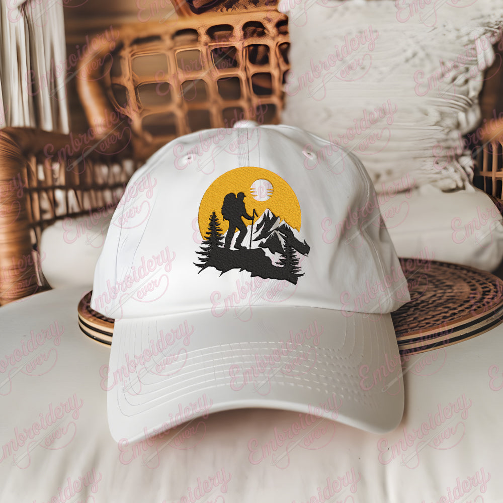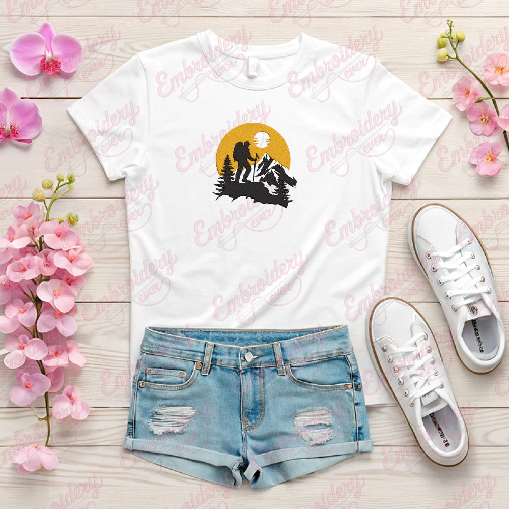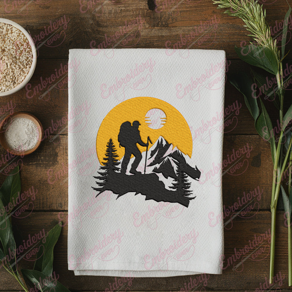 The Hiker Admiring Sunset Hiking Embroidery Design captures the serene beauty of a lone adventurer pausing to appreciate a breathtaking sunset. This intricate embroidery pattern features detailed stitching that highlights the silhouette of a hiker against a vibrant sky, evoking a sense of tranquility and connection with nature. Ideal for outdoor enthusiasts and embroidery artists alike, this design offers a perfect blend of artistry and storytelling. Its precise lines and shading techniques ensure a visually striking finish on garments, accessories, or home décor items. Elevate your projects with this expertly crafted design that celebrates the spirit of exploration and the peaceful moments found on the trail.