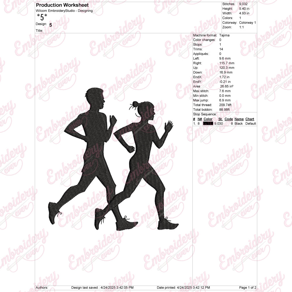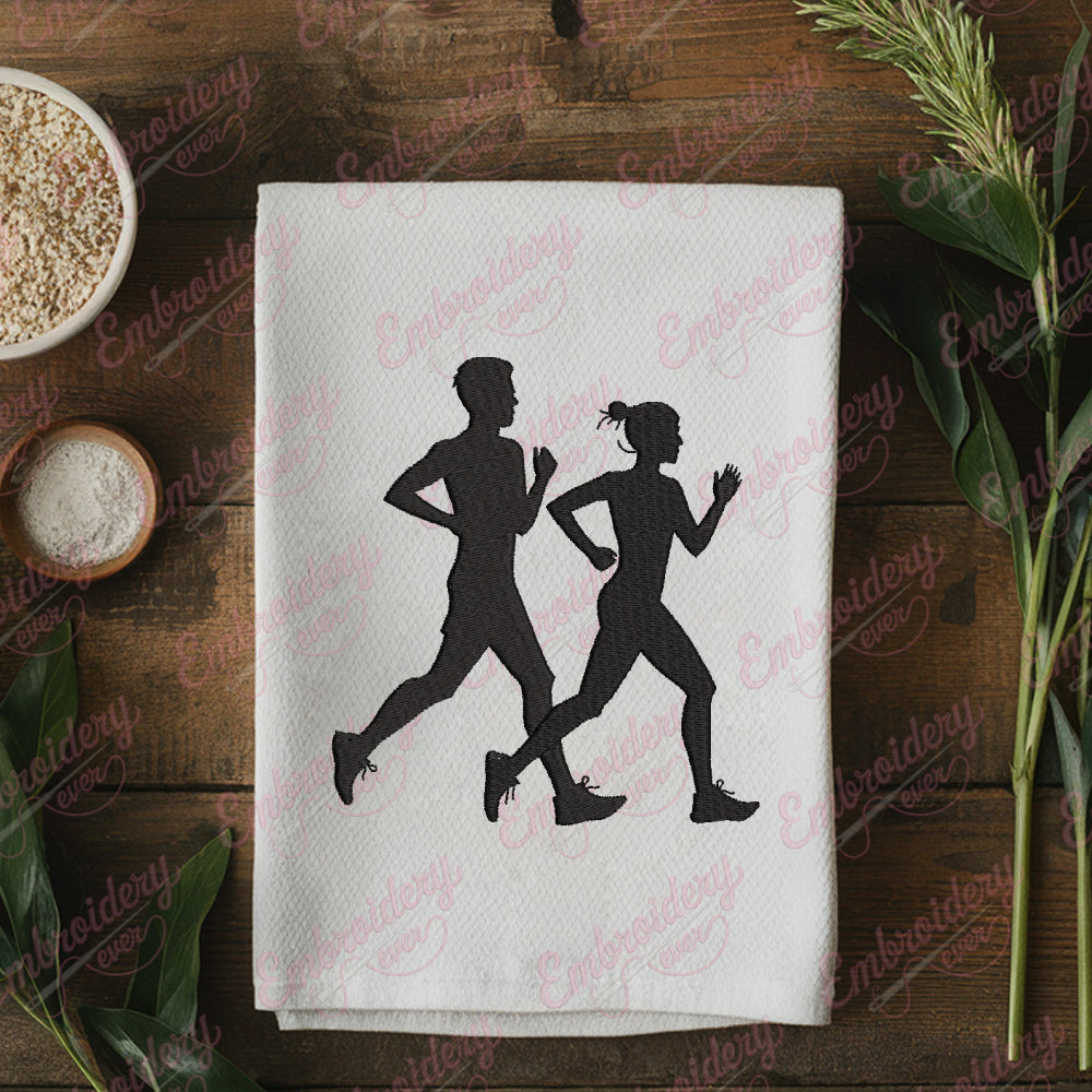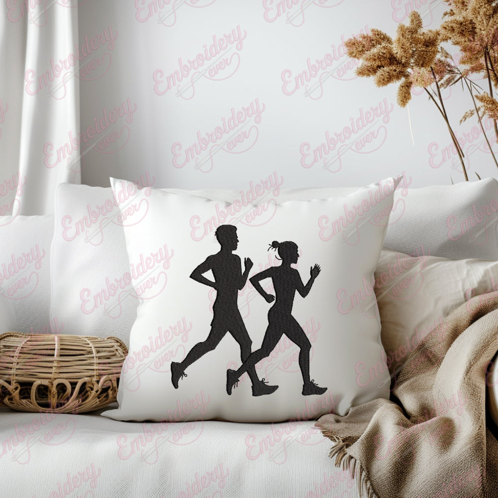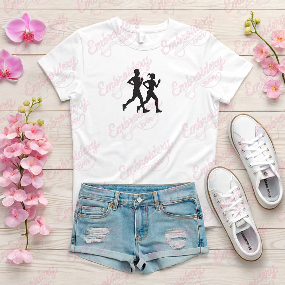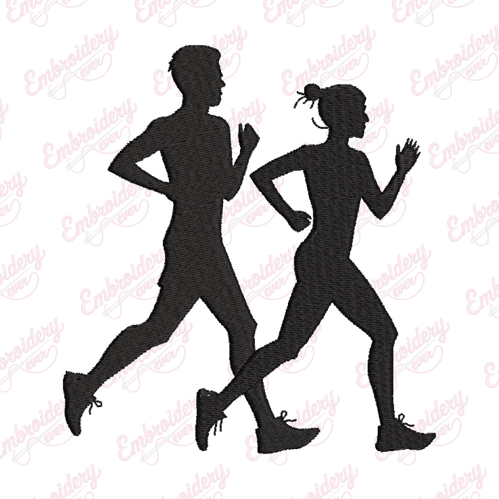 Man Woman Jogging Digital Download Machine Embroidery Design