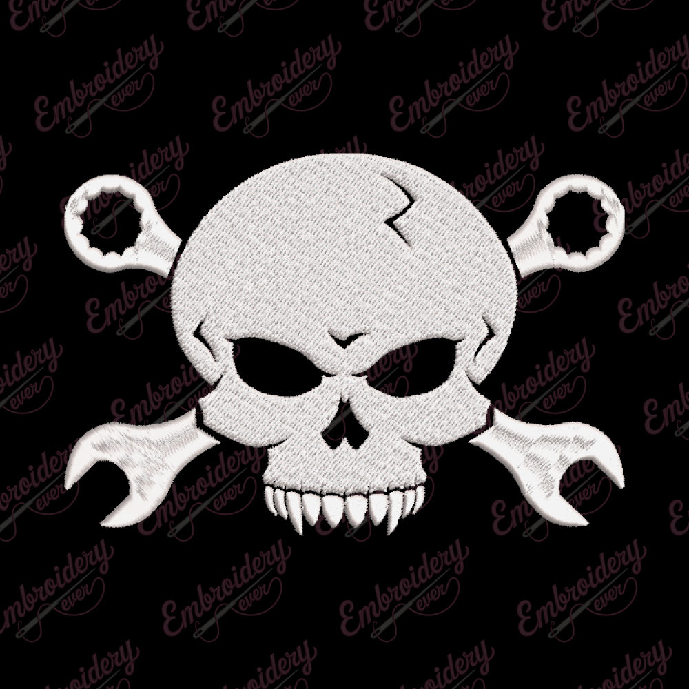 Skull and Wrench Crossbones Digital Download Machine Embroidery Design