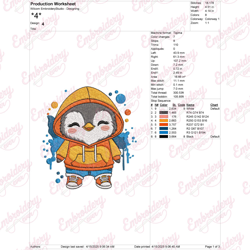 The Cute Penguin Wearing A Hoodie Embroidery Design captures an endearing and playful character, perfect for adding charm to any fabric project. This detailed embroidery design features a penguin dressed in a cozy hoodie, blending whimsy with warmth. Ideal for decorating children’s clothing, accessories, or home textiles, it brings a touch of personality and fun. The design’s intricate stitching ensures clear definition of the penguin’s features and the hoodie’s texture, providing a professional finish. Suitable for various embroidery machines, it offers versatility and ease of use, making it a valuable addition for both hobbyists and experienced embroiderers seeking to enhance their creations with a unique, delightful motif.