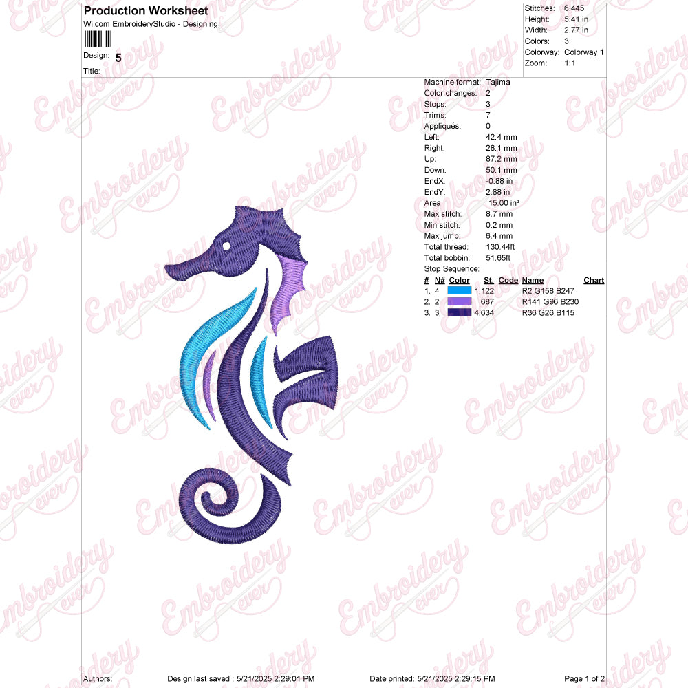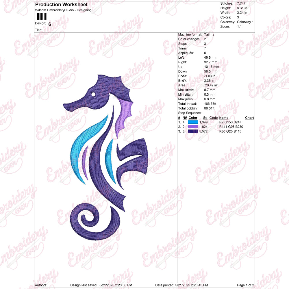 Let your creativity shine with this delightful Seahorse embroidery design!