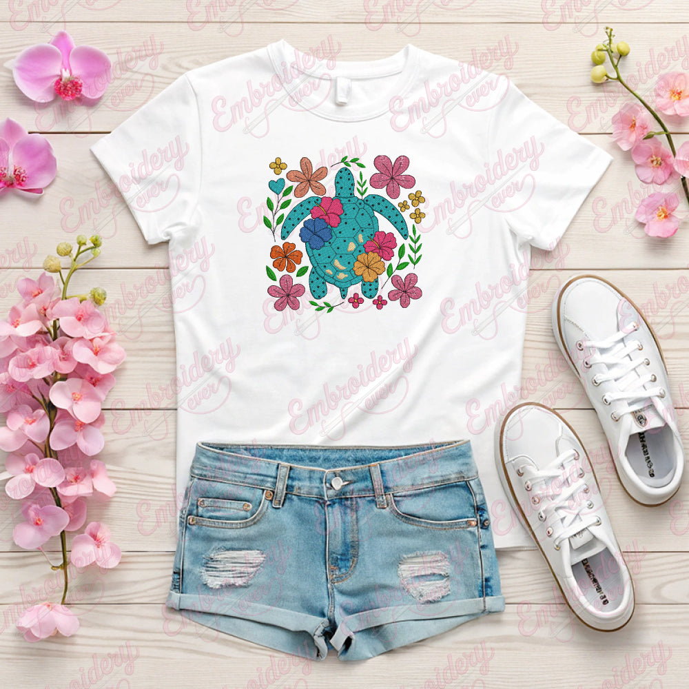 Let your creativity shine with this delightful Floral Sea Turtle embroidery design!
