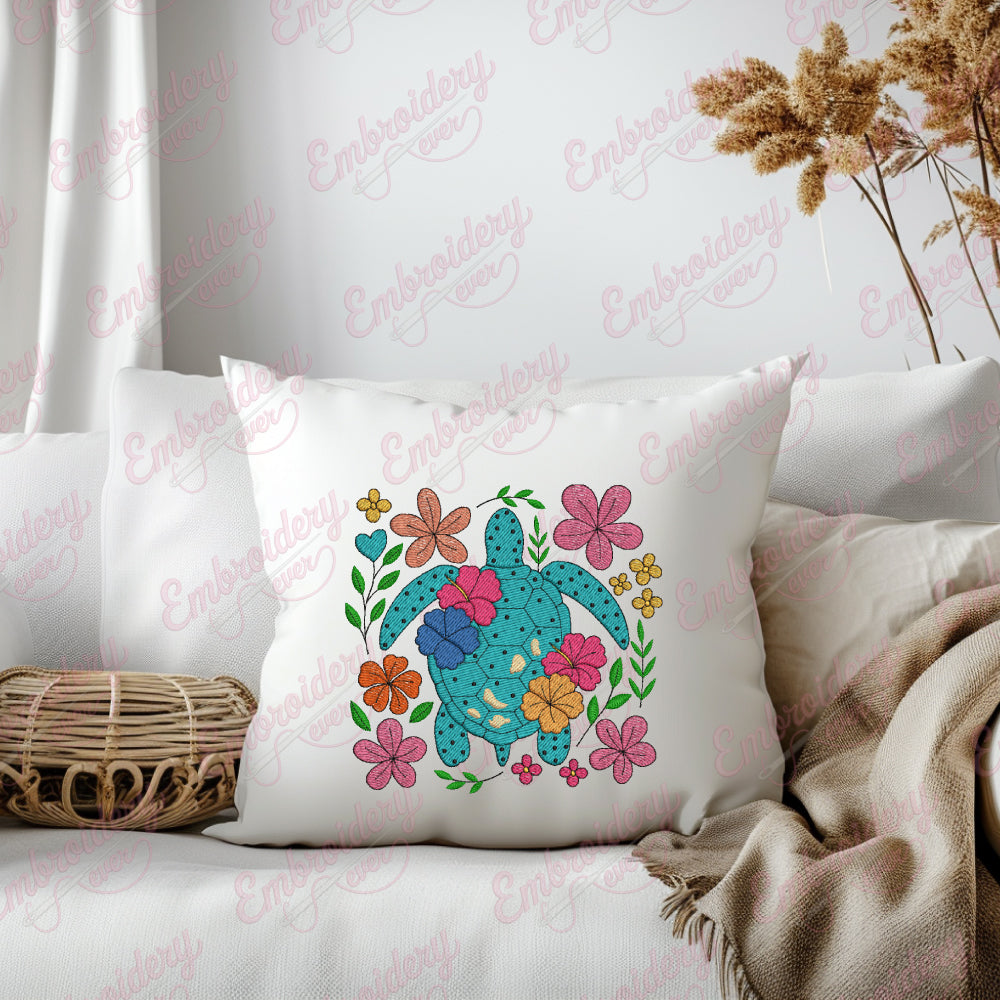 Floral Sea Turtle Digital Download Machine Embroidery Design