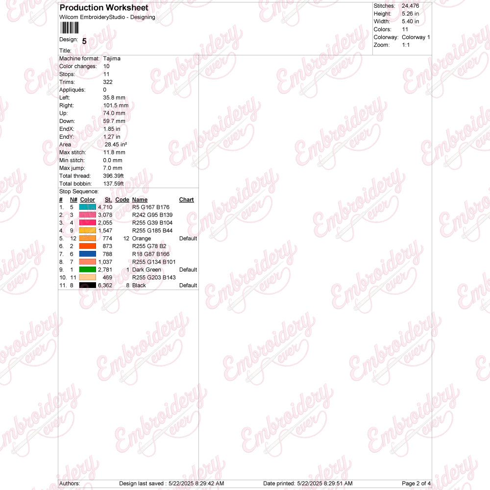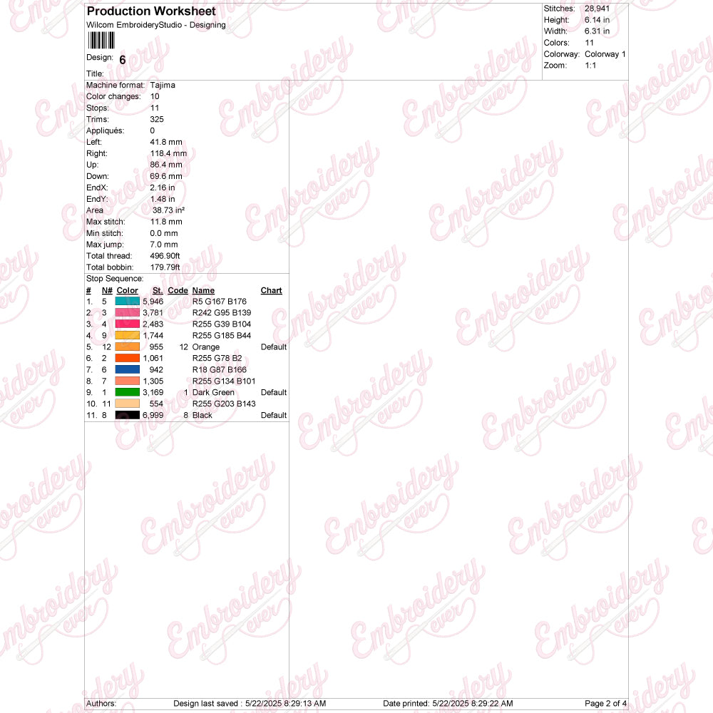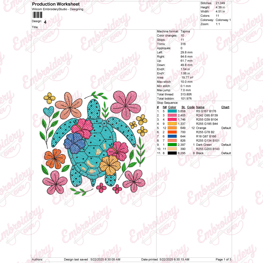 The Floral Sea Turtle Embroidery Design beautifully combines nature’s elegance with intricate craftsmanship. This design features a detailed sea turtle adorned with delicate floral motifs that enhance its natural grace. Ideal for embellishing garments, accessories, or home décor, this embroidery pattern offers a unique blend of marine and botanical artistry. Its precise stitching requirements ensure a refined, textured finish that stands out on various fabrics. Crafted for advanced embroidery enthusiasts, this design supports customization in color and thread choice, allowing artisans to produce vibrant, personalized pieces. Elevate your embroidery projects with this sophisticated Floral Sea Turtle motif that seamlessly merges ocean life and floral beauty.