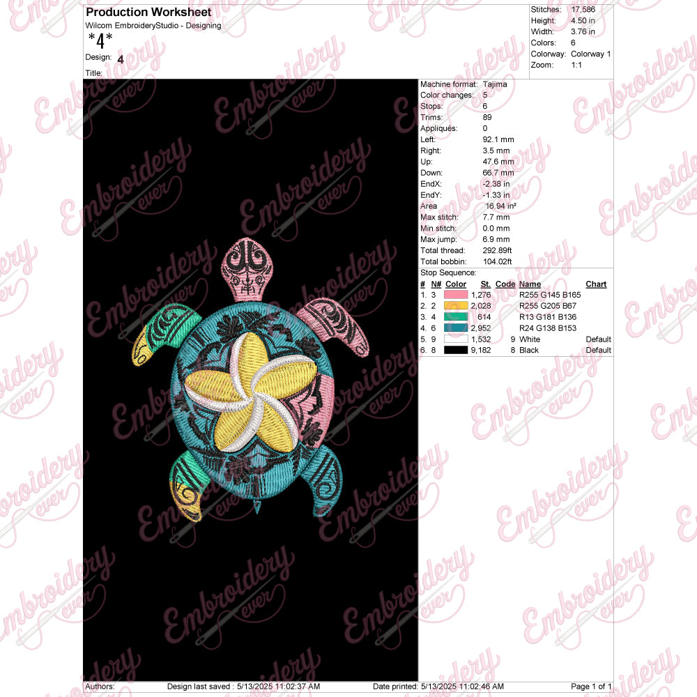 The Hawaiian Sea Turtle Embroidery Design captures the essence of this iconic marine creature with intricate detail and cultural significance. Meticulously crafted, the design showcases the distinctive shell patterns and graceful form of the sea turtle, reflecting the animal’s importance in Hawaiian tradition as a symbol of longevity, protection, and navigation. Perfect for adding a touch of Pacific Island heritage, this embroidery design is ideal for enhancing textiles, apparel, or accessories with an elegant, nature-inspired motif. Its precise stitching guidance ensures a high-quality finish, making it suitable for both advanced embroidery enthusiasts and professionals seeking a refined and meaningful design.