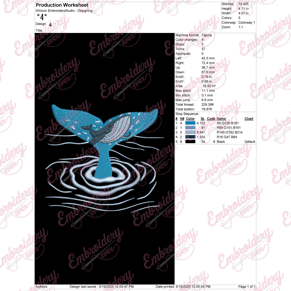 The Humpback Whale Embroidery Design offers a detailed and lifelike representation of the majestic marine mammal, expertly crafted to capture its distinctive features. This design highlights the whale’s iconic long pectoral fins, knobby head, and graceful curves, allowing for a stunning physical portrayal on fabric. Suitable for a variety of textile projects, this embroidery pattern enhances garments, home décor, and accessories with a touch of oceanic elegance. Its intricate stitching provides depth and texture, ensuring the final product evokes the whale’s dynamic movement and natural beauty. Perfect for marine enthusiasts and embroidery experts alike, it combines artistic precision with durable craftsmanship.