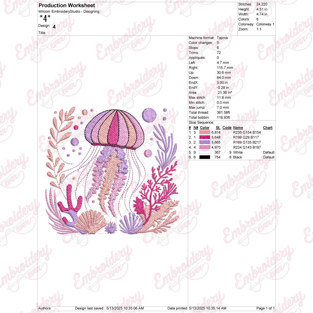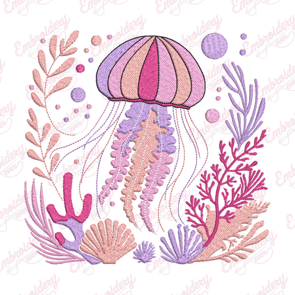 The Tropical Jellyfish Machine Embroidery Design offers a vibrant and intricate pattern inspired by the graceful movements of jellyfish in tropical waters. Crafted with expert attention to detail, this design captures the delicate tentacles and translucent body of the jellyfish, rendered in bright, tropical colors that enhance its visual appeal. Ideal for adding a touch of marine elegance to garments, accessories, or home decor, this embroidery design is compatible with a wide range of machine embroidery formats. Its complexity allows experienced users to showcase their skills, while its versatility makes it perfect for seasonal projects or ocean-themed collections. Durable and eye-catching, it brings nature-inspired sophistication to any textile.