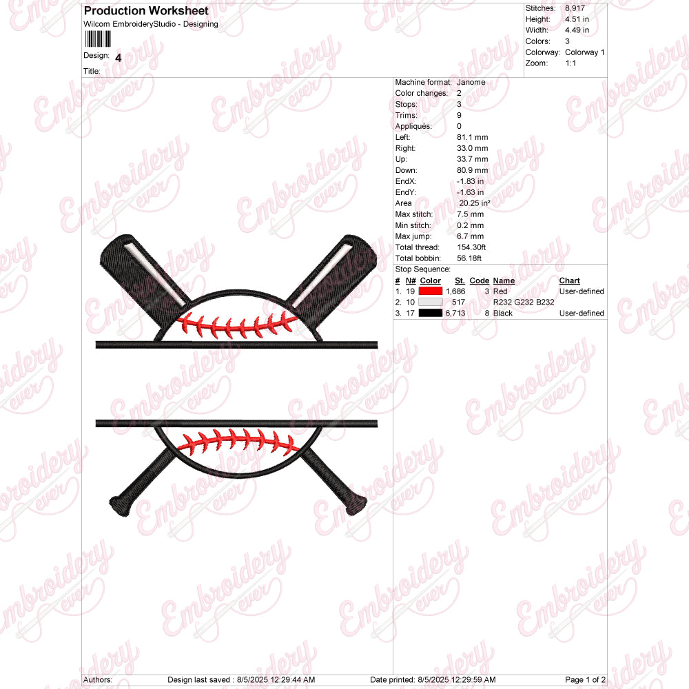 Let your creativity shine with this delightful Baseball Split Name Frame embroidery design!