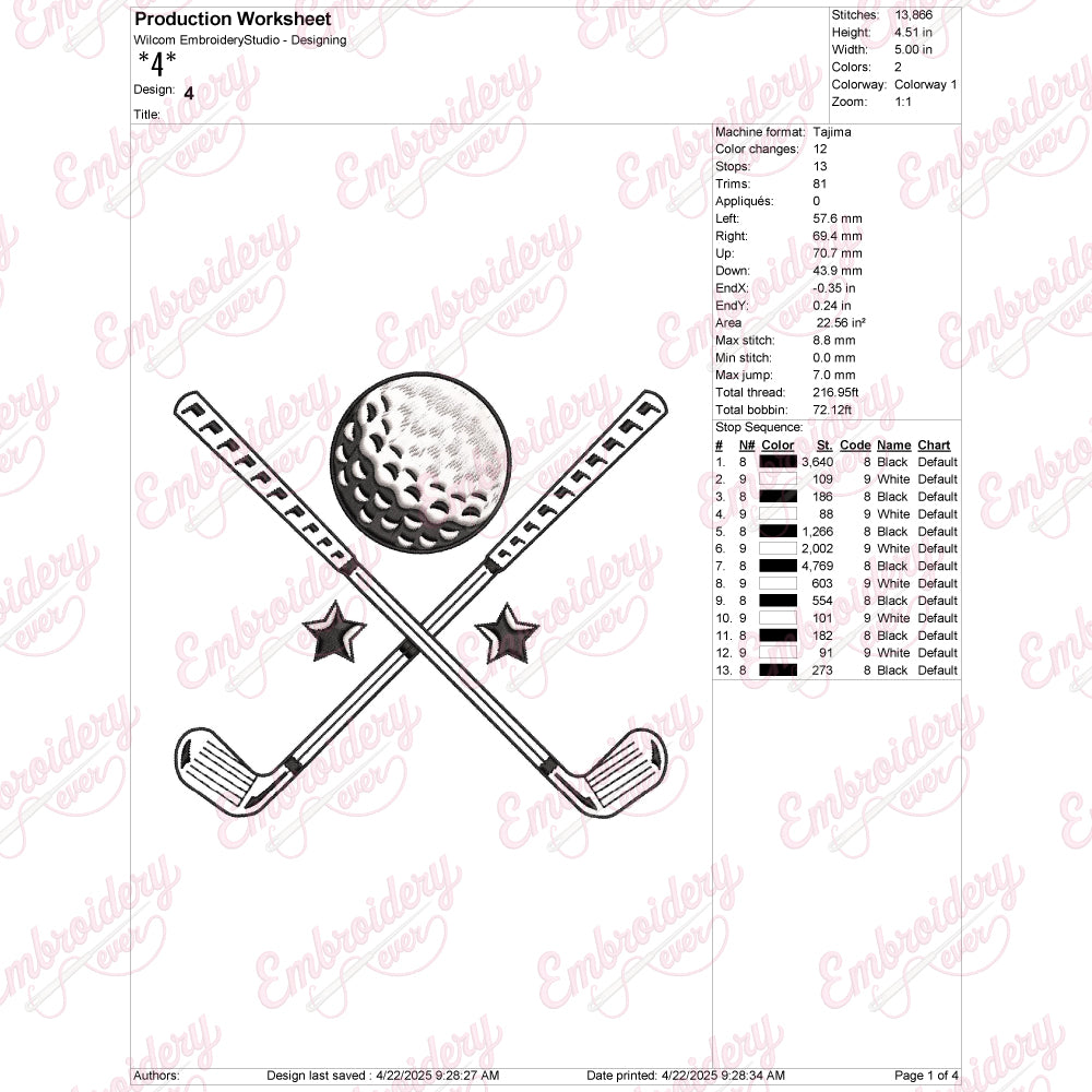 The Golf Clubs & Ball Embroidery Design captures the essence of the sport with precise detail and expert craftsmanship. This design features intricately stitched golf clubs crossed behind a perfectly rendered golf ball, creating a dynamic and authentic representation ideal for golf enthusiasts. Perfect for embellishing apparel, accessories, or golf gear, it adds a professional touch that highlights passion for the game. The fine detailing ensures clarity even at smaller sizes, making it versatile for various fabric types. Whether for personal use or gifting, this embroidery design elevates any item with a sophisticated nod to golf’s timeless appeal.