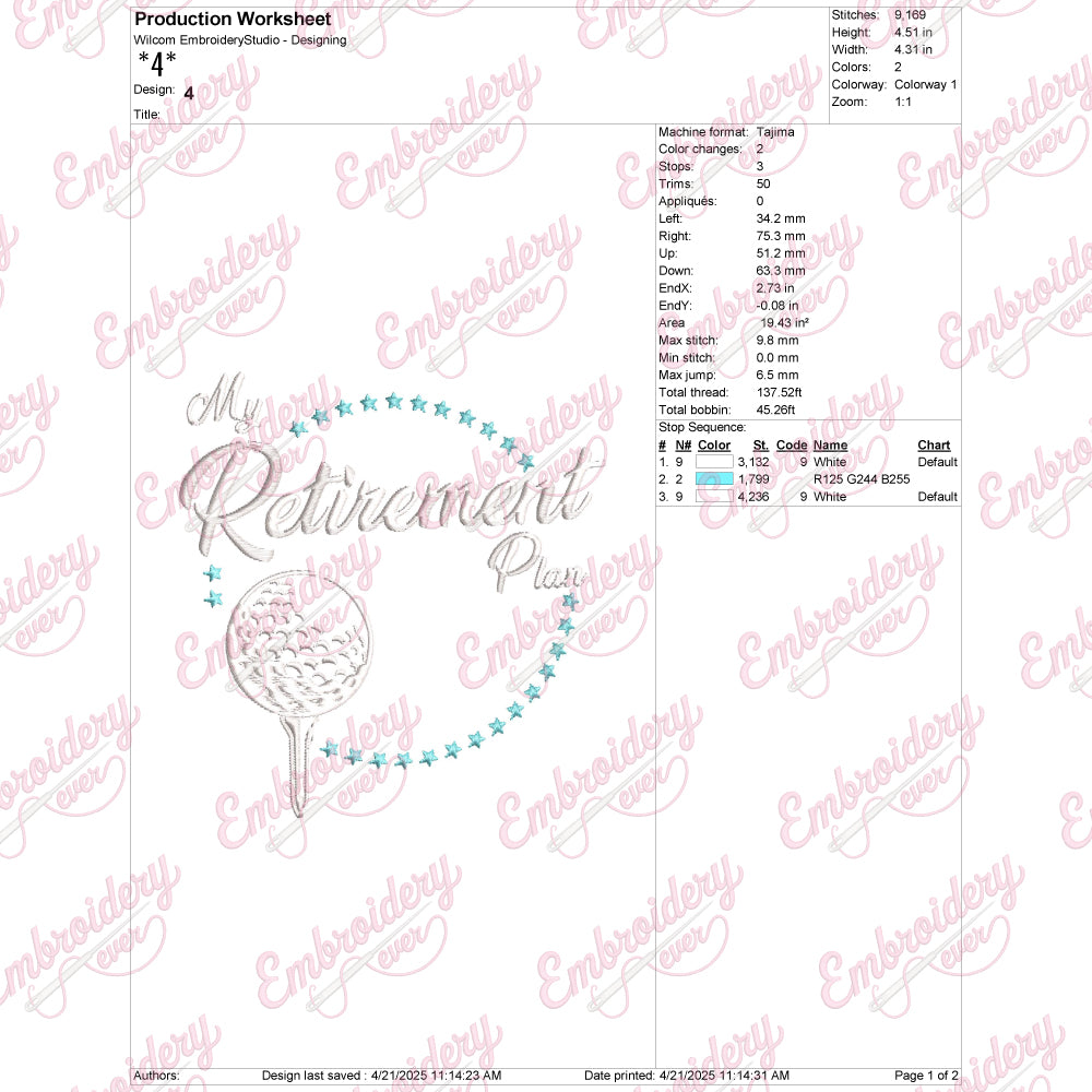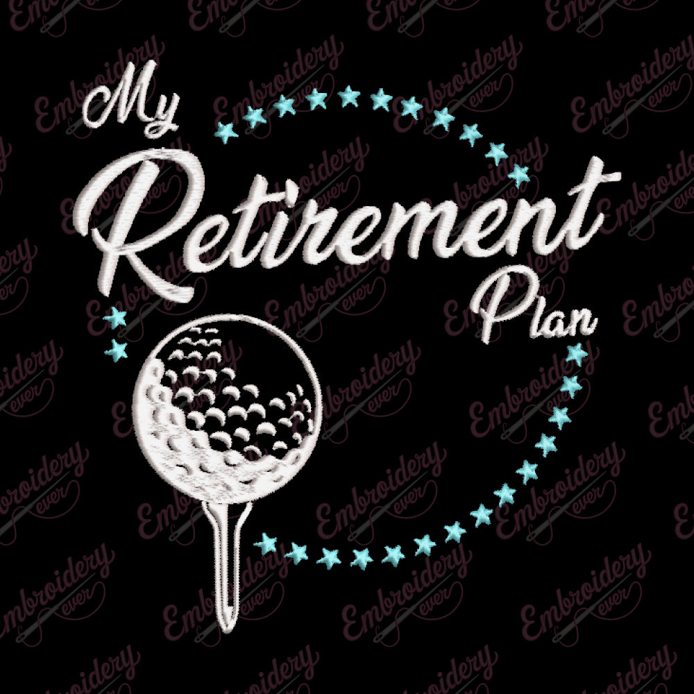 Let your creativity shine with this delightful Golf Retirement Plan embroidery design!