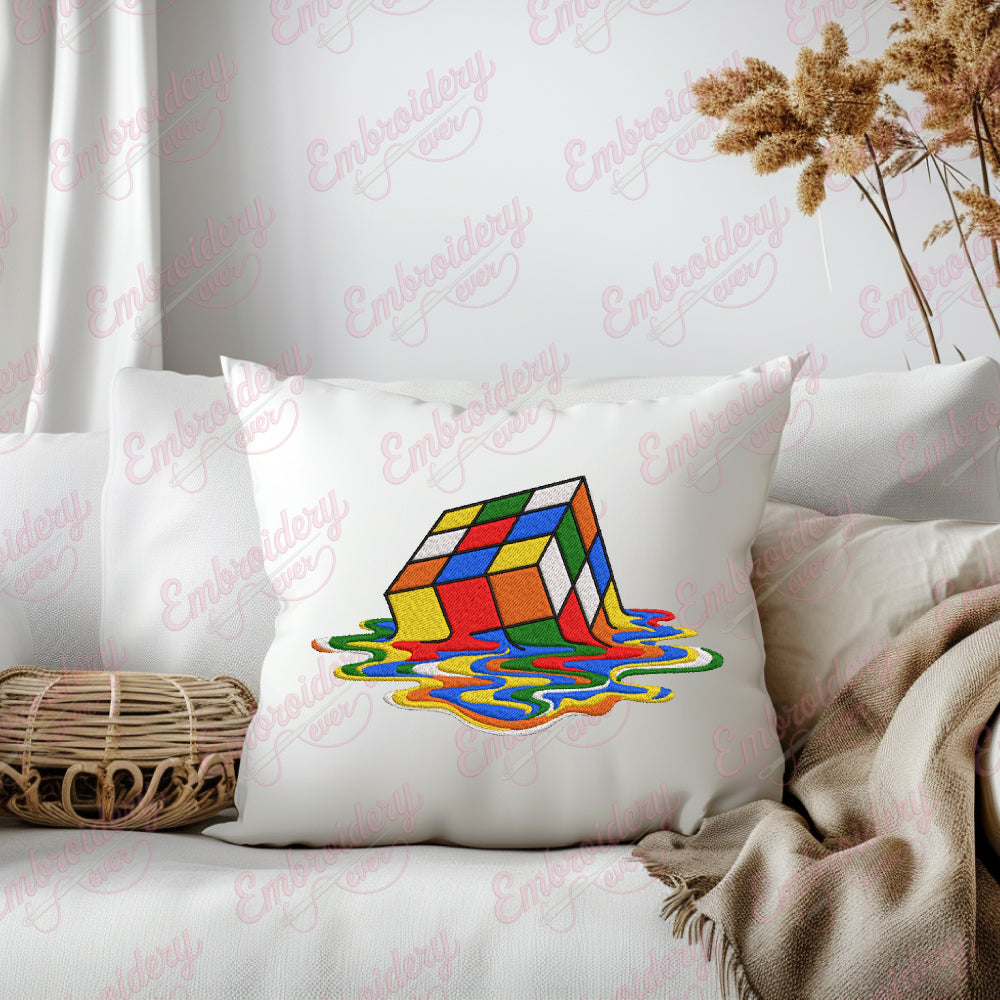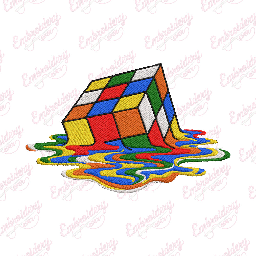 Let your creativity shine with this delightful Melting Rubik's Cube embroidery design!