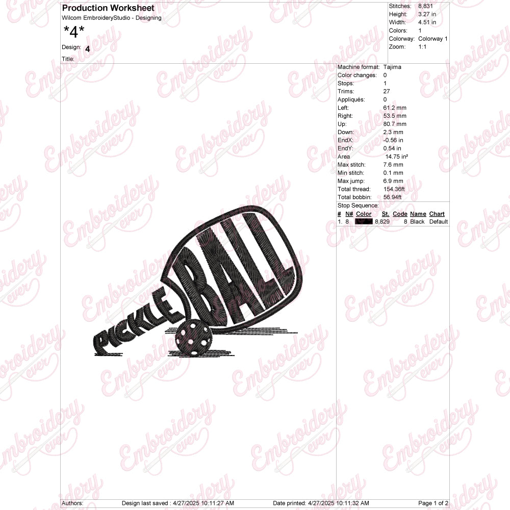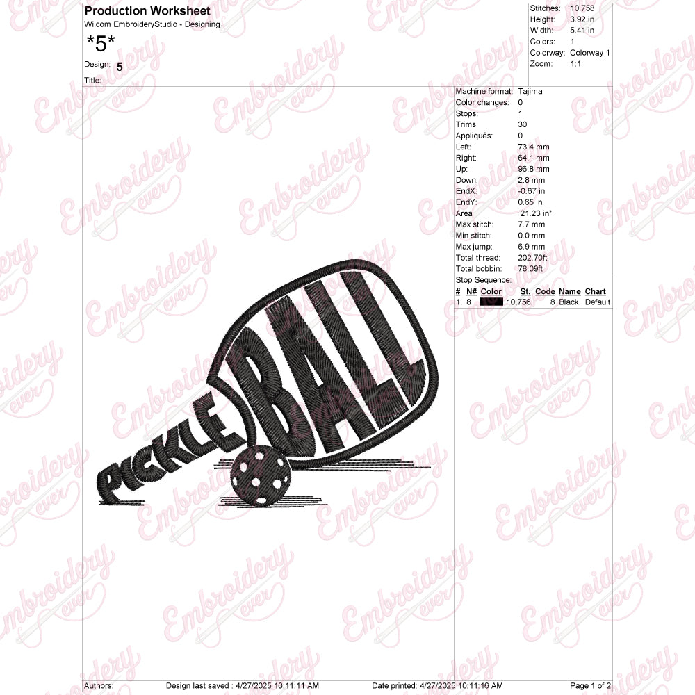 Let your creativity shine with this delightful Pickleball embroidery design!