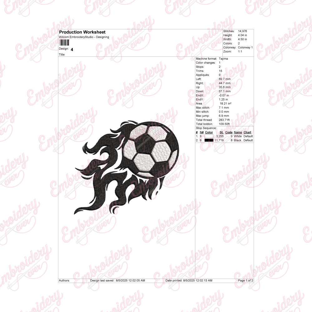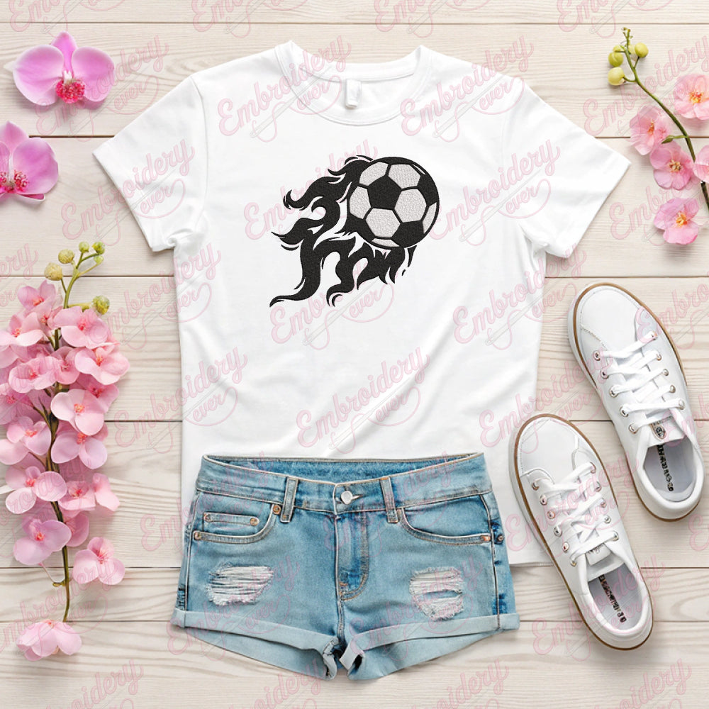 The Soccer Ball on Fire Embroidery Design captures dynamic motion and intensity, perfect for sports enthusiasts and team apparel. This intricate design features a soccer ball engulfed in realistic flames, symbolizing passion, speed, and energy on the field. Crafted with precision, it offers sharp details and vibrant contrasts that stand out on various fabric types. Ideal for customizing jerseys, bags, or fan gear, this embroidery design enhances any item with a bold, athletic flair. Its expert-level detail ensures a professional finish, making it a top choice for clubs, coaches, and players seeking to showcase their fiery spirit through high-quality embroidery.