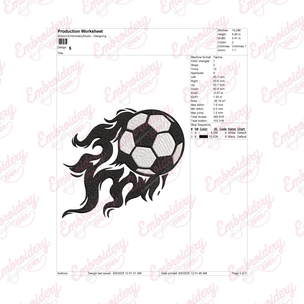 Soccer Ball on Fire Digital Download Machine Embroidery Design