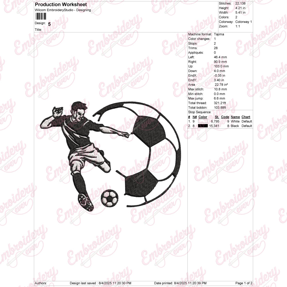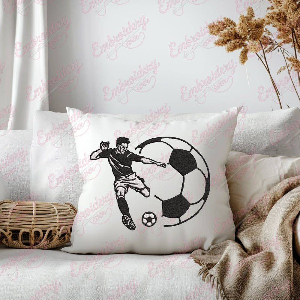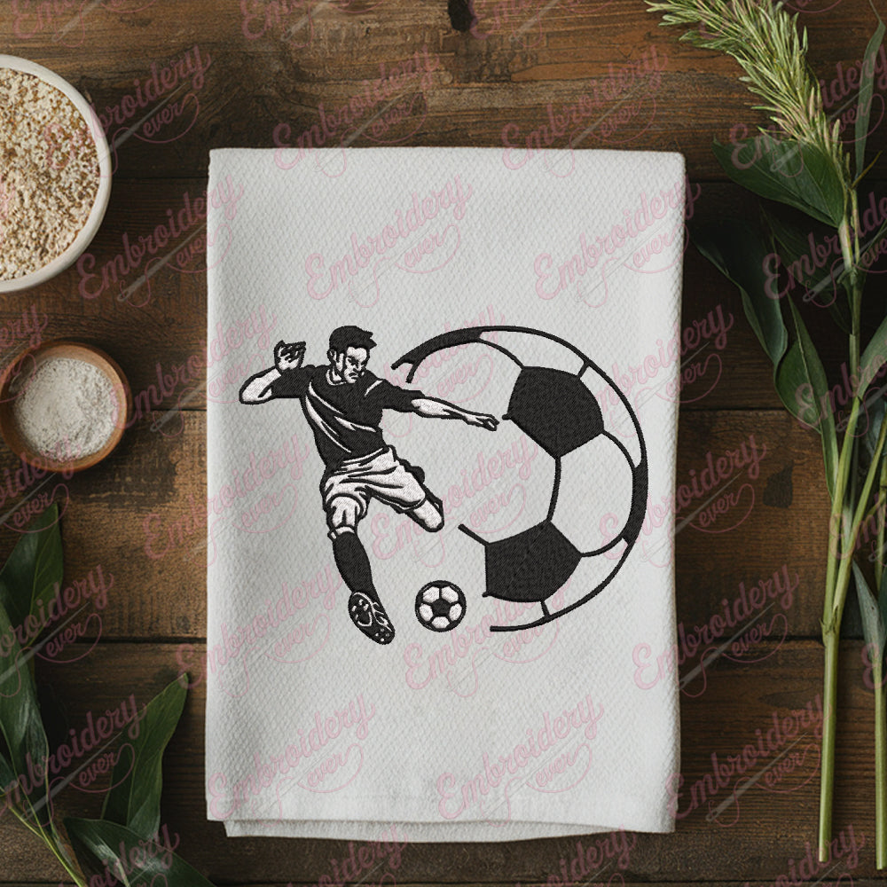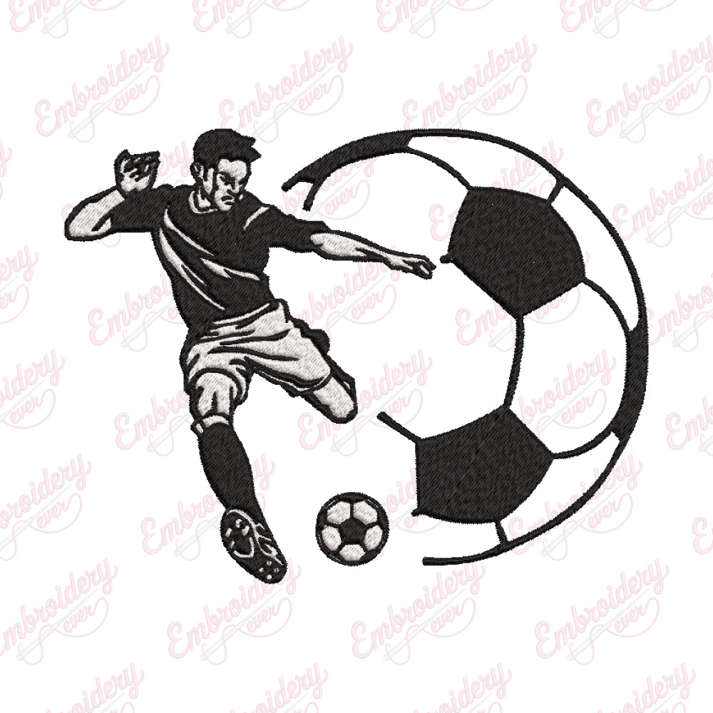 The Soccer Player Kick Soccer Ball Embroidery Design captures the dynamic motion of a player striking a soccer ball with precision and energy. Expertly crafted, this design showcases detailed stitching that highlights the athlete’s posture, uniform, and the ball’s trajectory, making it ideal for sports apparel, fan gear, or personalized gifts. Its intricate embroidery ensures durability and a professional finish, suitable for various fabric types. Perfect for soccer enthusiasts and teams, this design adds a vibrant, action-packed element to any garment, celebrating the spirit and excitement of the game with expert craftsmanship and attention to detail.