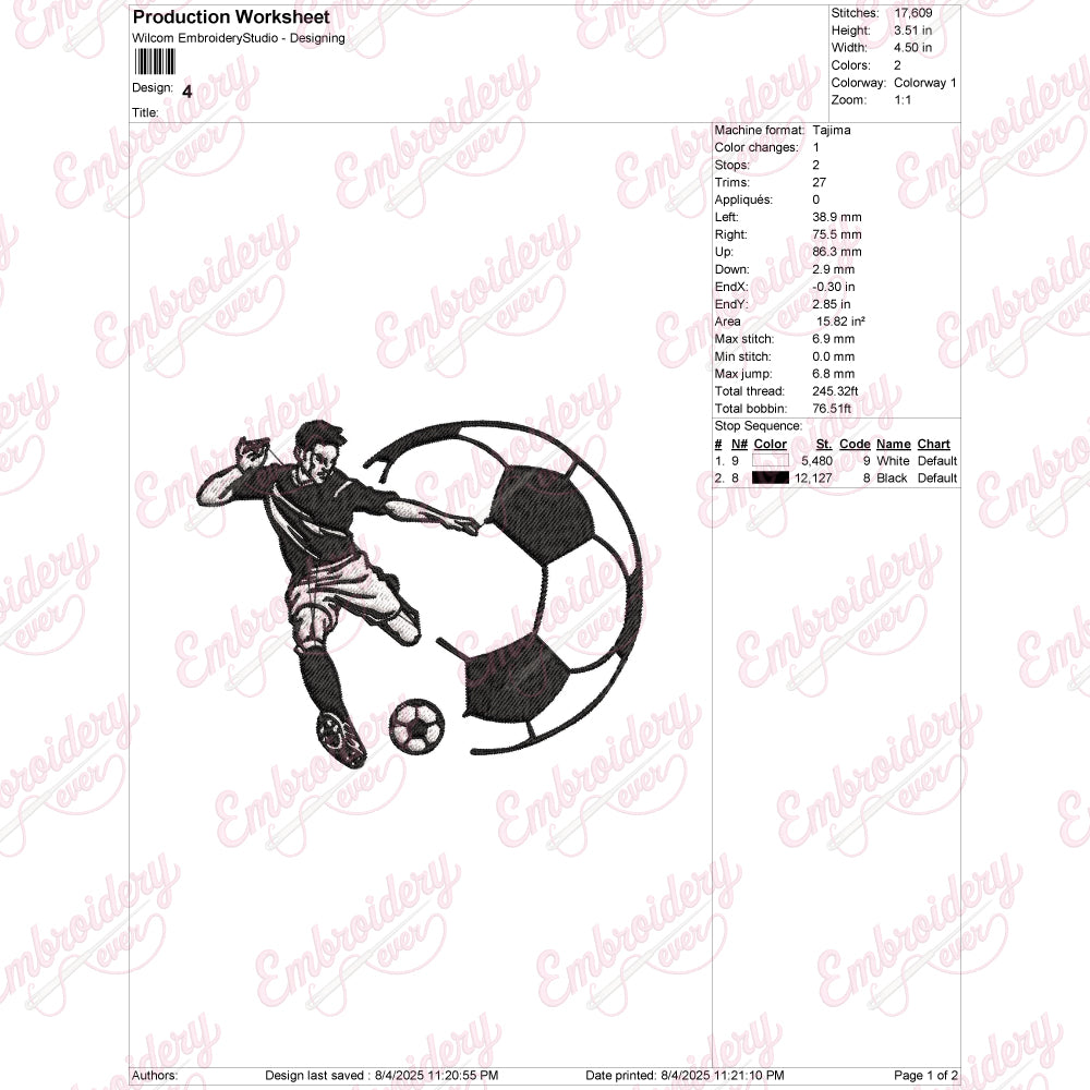 Let your creativity shine with this delightful Soccer Player embroidery design!