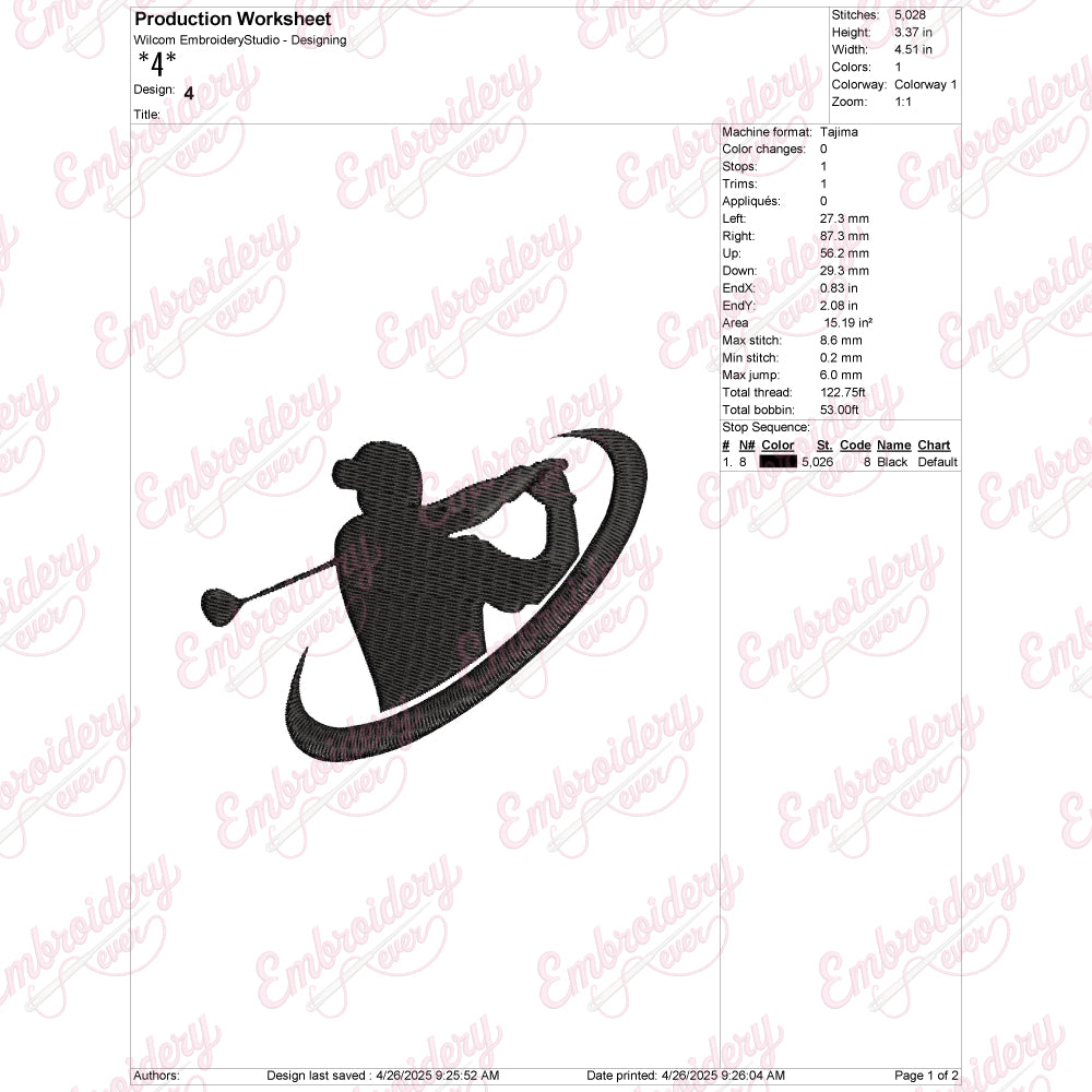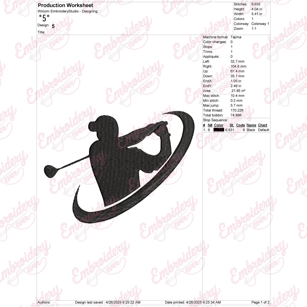 The Swing Golf Logo Embroidery Design is a meticulously crafted digital embroidery pattern that captures the dynamic motion and elegance of a golf swing. Designed with precision, this embroidery file features clean lines and balanced proportions, making it ideal for enhancing golf apparel, accessories, or promotional items. Its detailed stitching instructions ensure smooth execution on various fabric types, providing a professional finish every time. Perfect for golf enthusiasts and businesses alike, this design adds a sophisticated touch that reflects passion for the sport while maintaining durability and visual appeal through high-quality embroidery techniques.