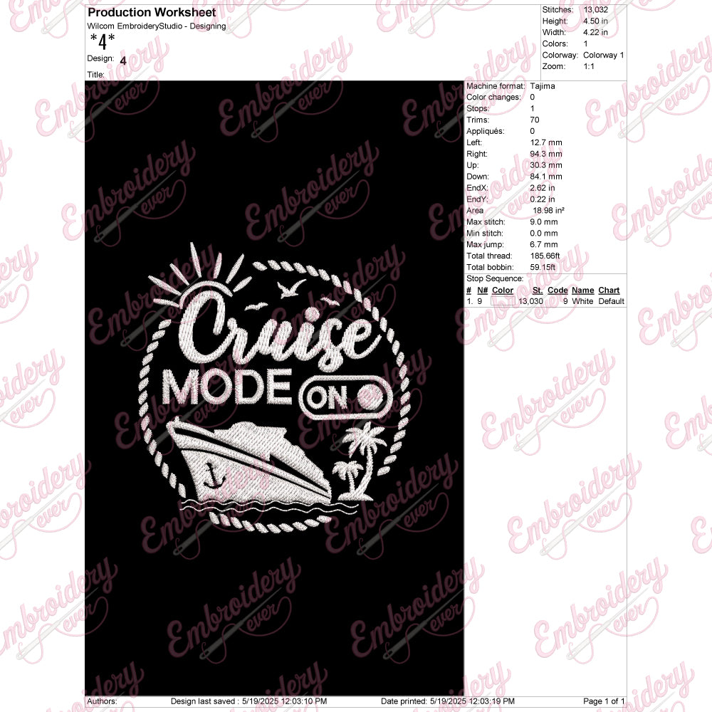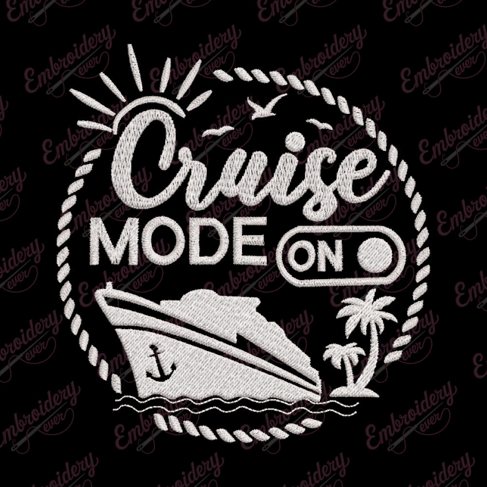 Let your creativity shine with this delightful Cruise Mode On embroidery design!