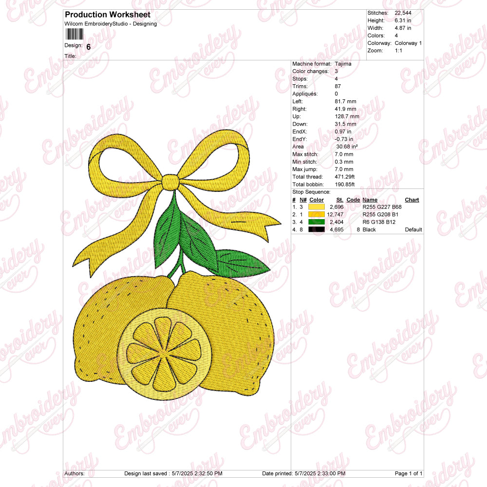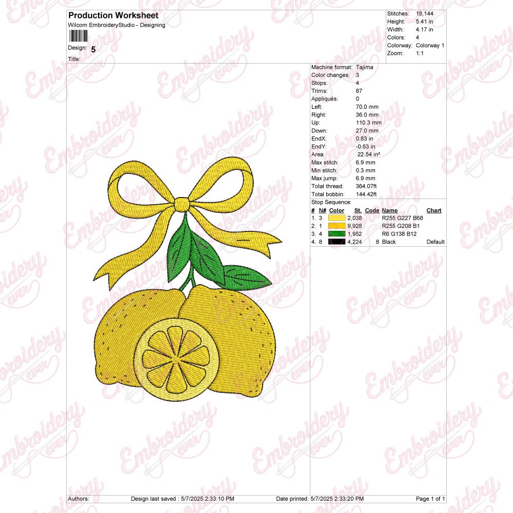 Let your creativity shine with this delightful Lemon Bow embroidery design!