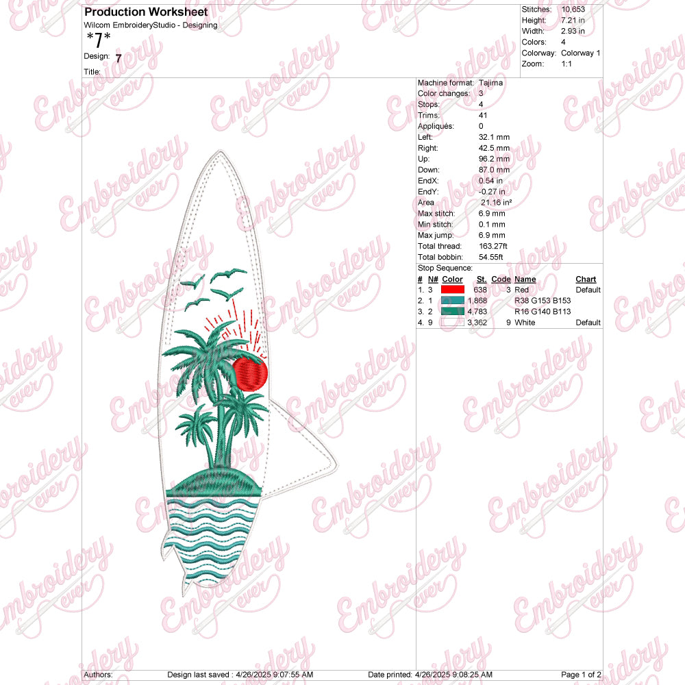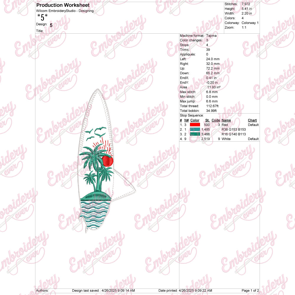 Let your creativity shine with this delightful Surfing Beach embroidery design!