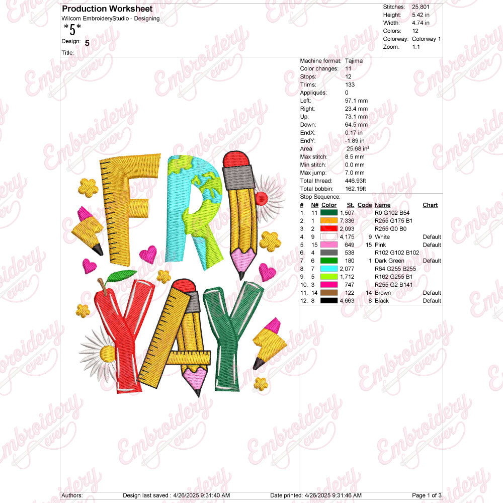 Celebrate the joy of Fridays with the Fri Yay Teacher Embroidery Design, a perfect addition for educators who love to express their enthusiasm for the weekend. This detailed embroidery design captures the playful spirit of teachers looking forward to a well-deserved break. Crafted with precision, it features vibrant colors and clean lines that stand out beautifully on various fabric types. Ideal for customizing apparel, tote bags, or classroom accessories, this design adds a cheerful and professional touch to your projects. Its expert craftsmanship ensures durability and ease of stitching, making it a valuable choice for both personal use and thoughtful gifts for teachers.