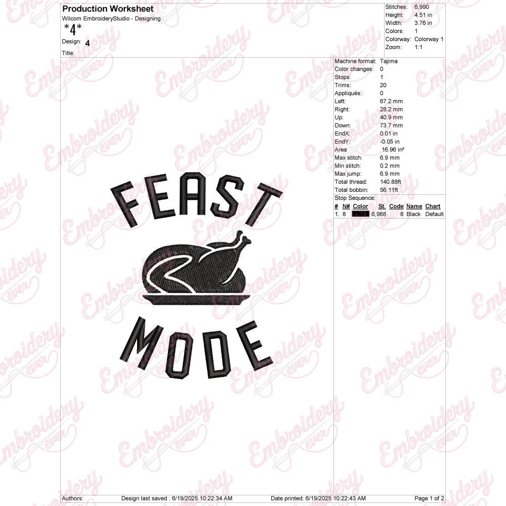 Let your creativity shine with this delightful Feast Mode embroidery design!