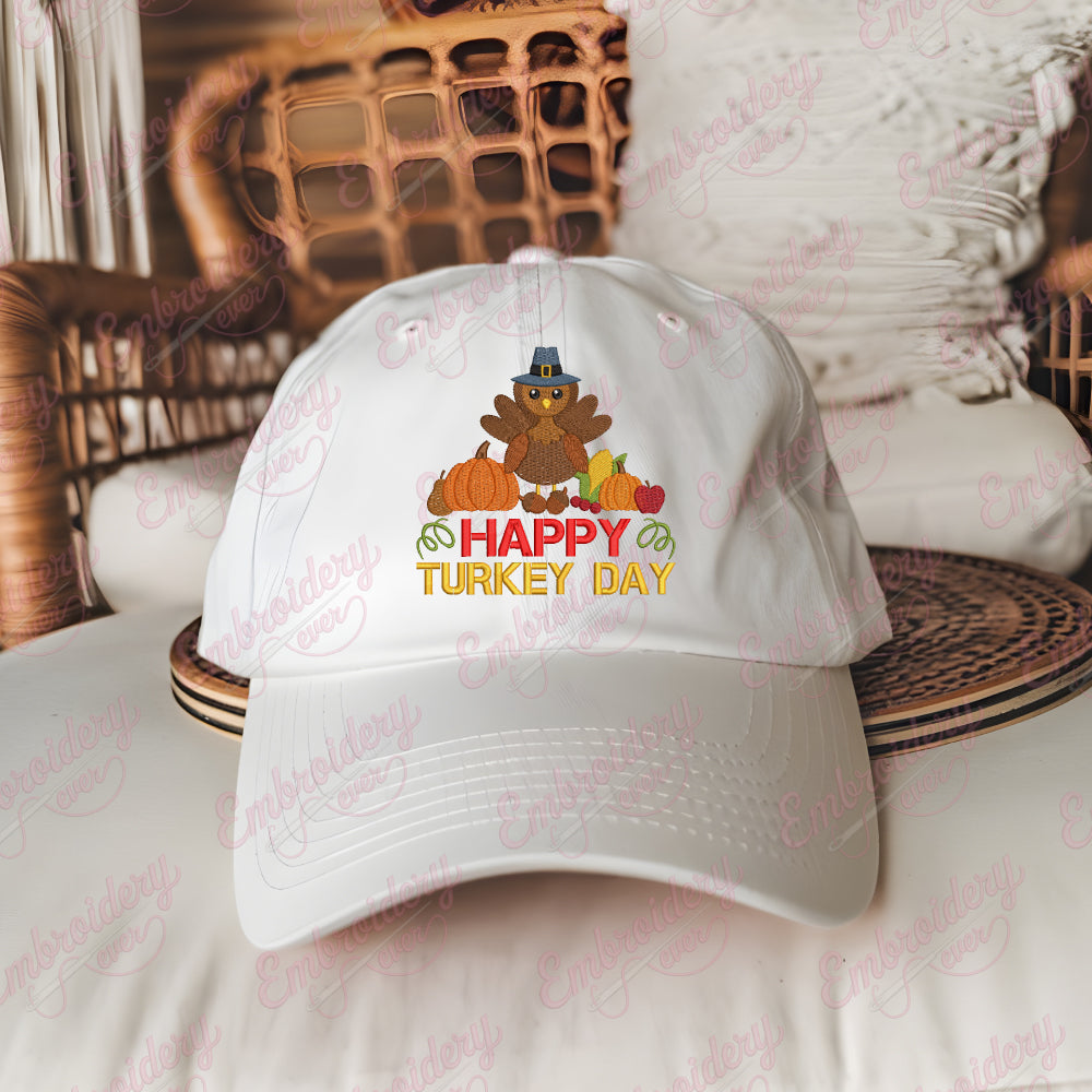 Let your creativity shine with this delightful Happy Turkey Day embroidery design!