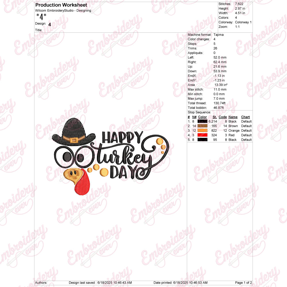Let your creativity shine with this delightful Happy Turkey Day embroidery design!